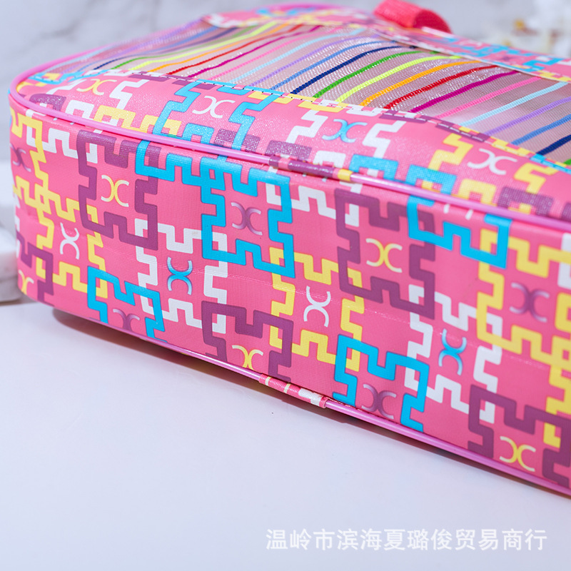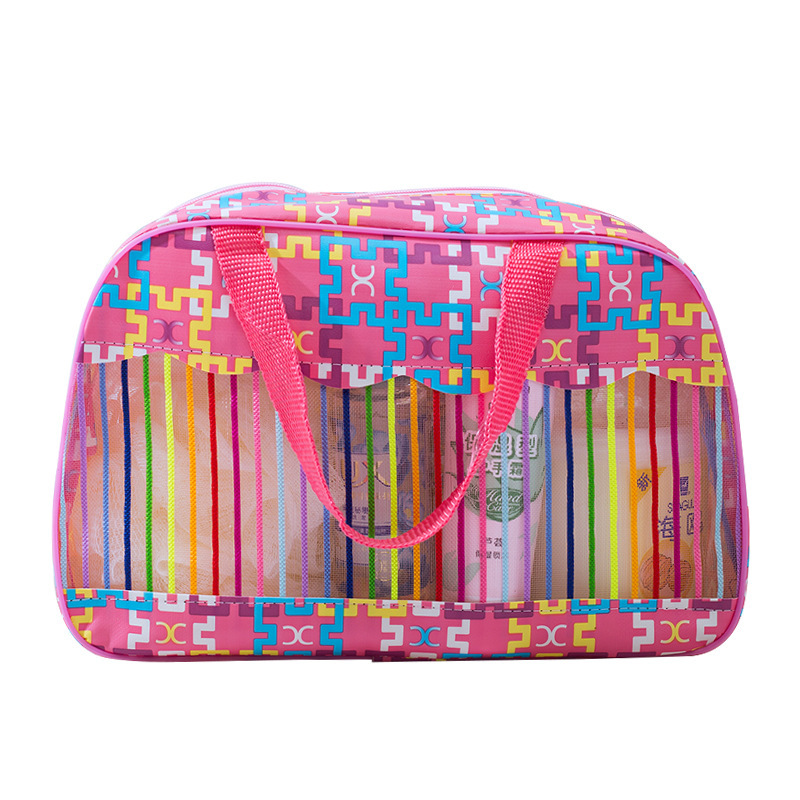 商品名称:厂家直供大容量彩条图案洗漱外出便携手提收纳PVC化妆包厂家直供