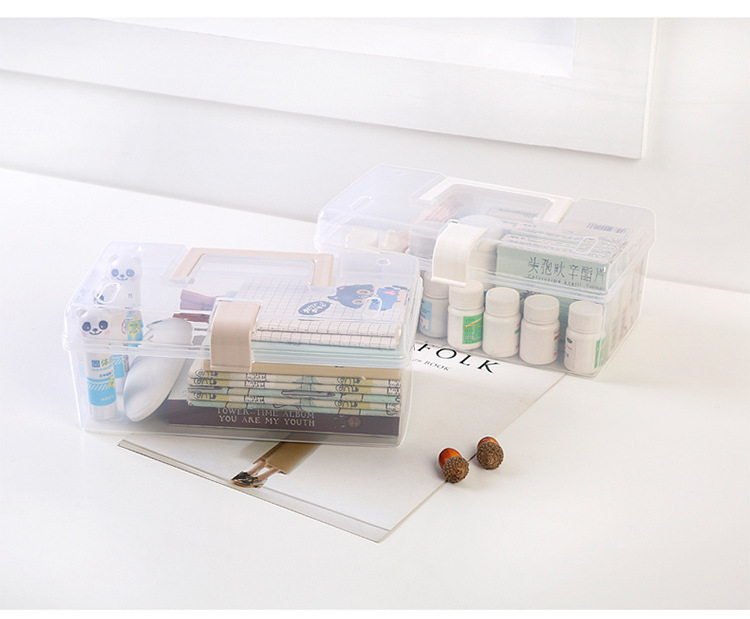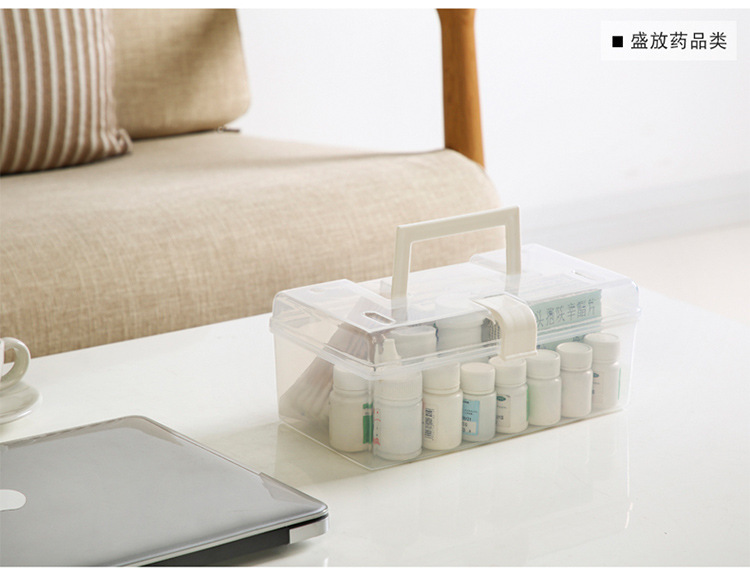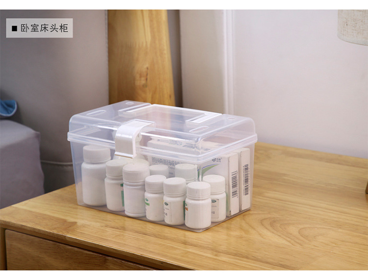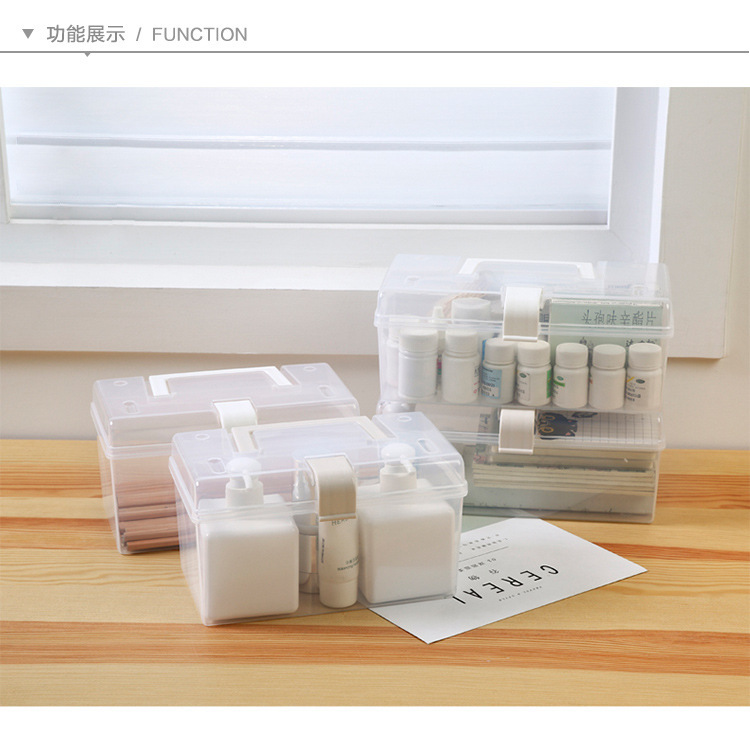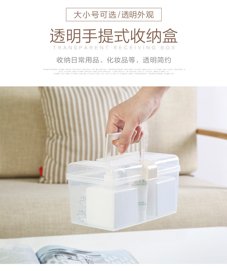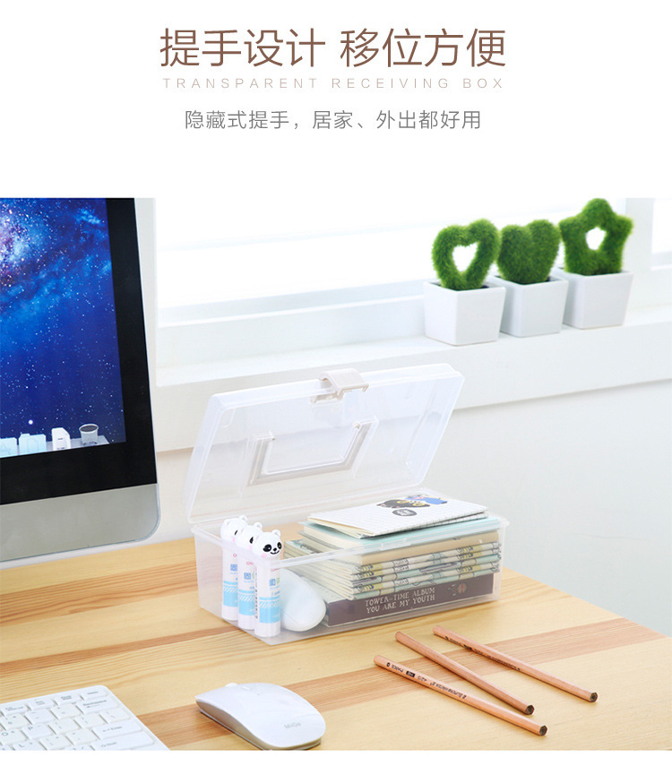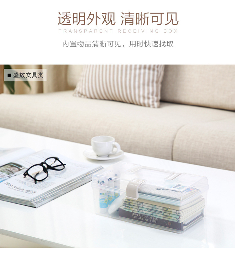 商品名称:家用透明收纳盒桌面塑料整理盒手提储物箱小箱子整理箱药箱收纳箱