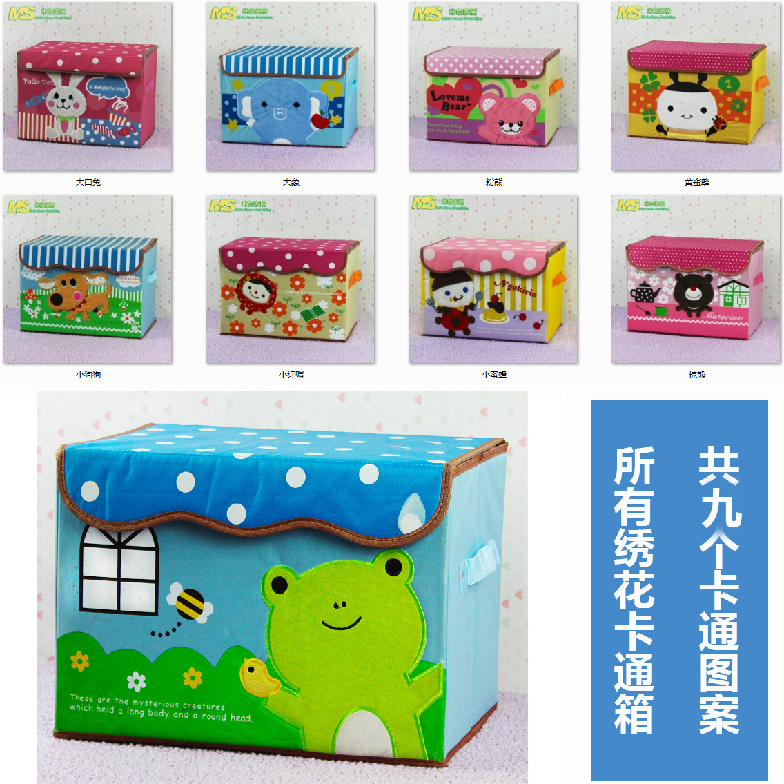 商品名称:卡通图案收纳箱植绒绣花牛津布收纳盒儿童衣物整理箱玩具储物箱