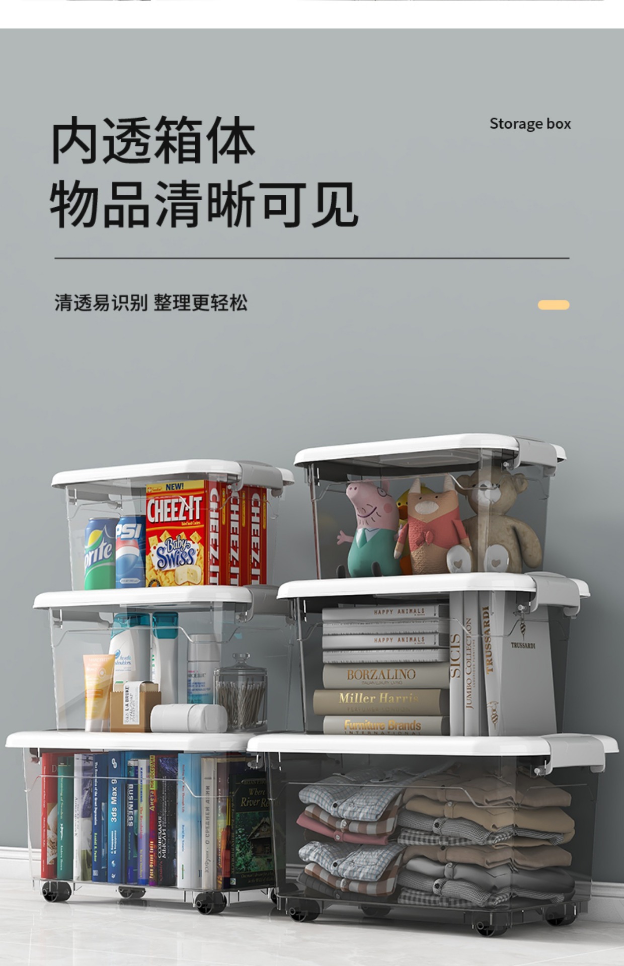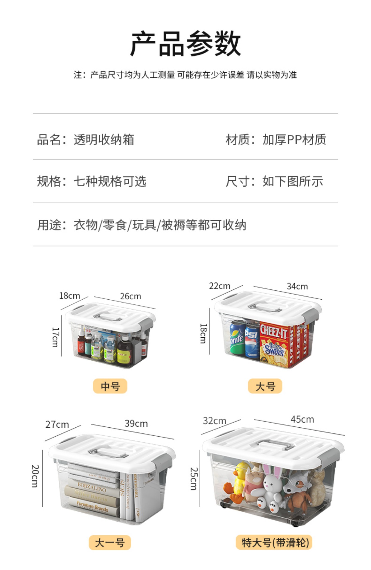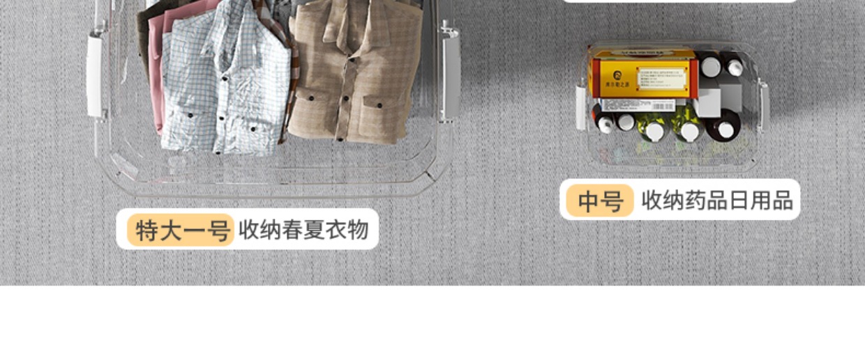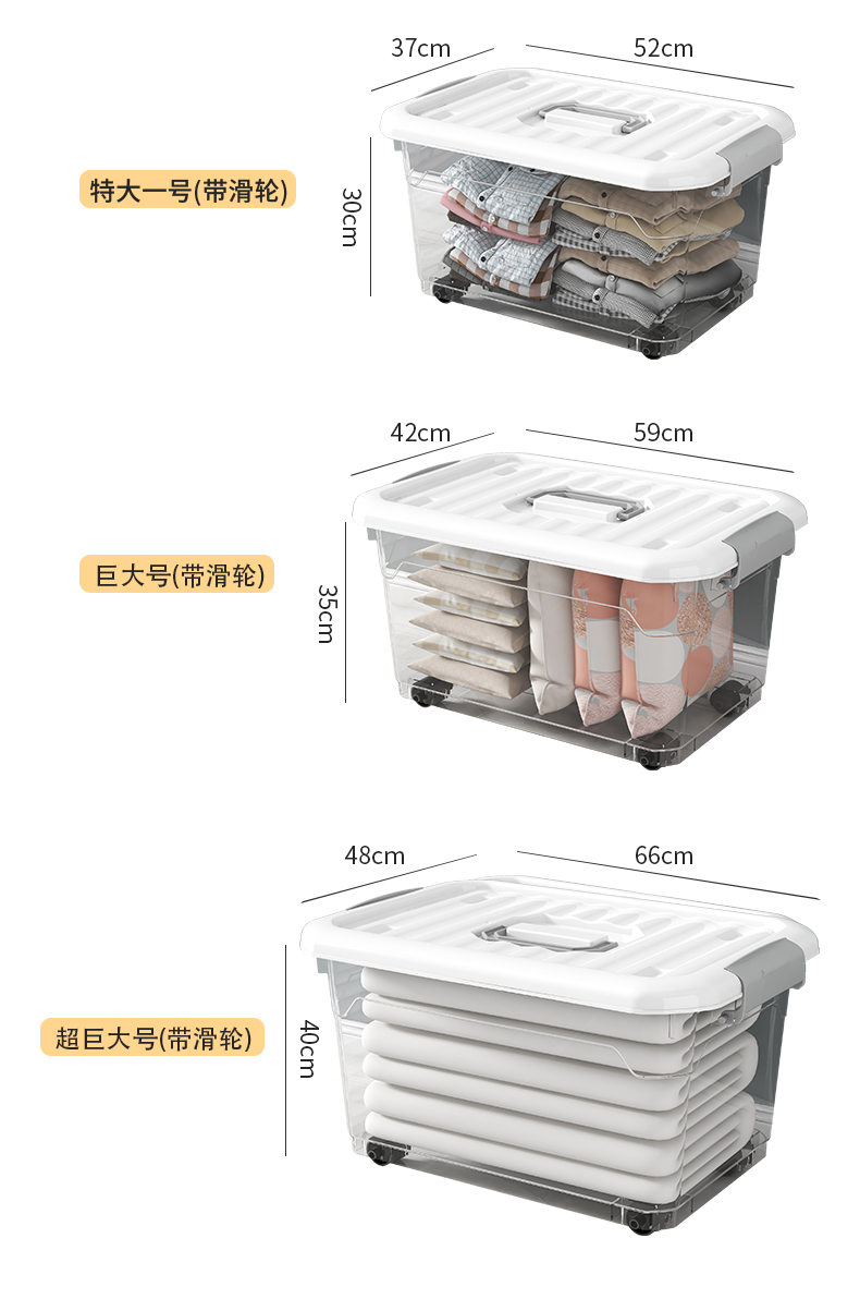 商品名称:加厚透明收纳箱家用大容量储物箱塑料收纳盒衣服零食玩具整理箱子