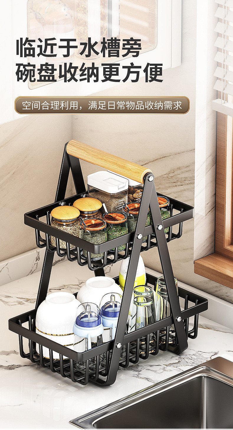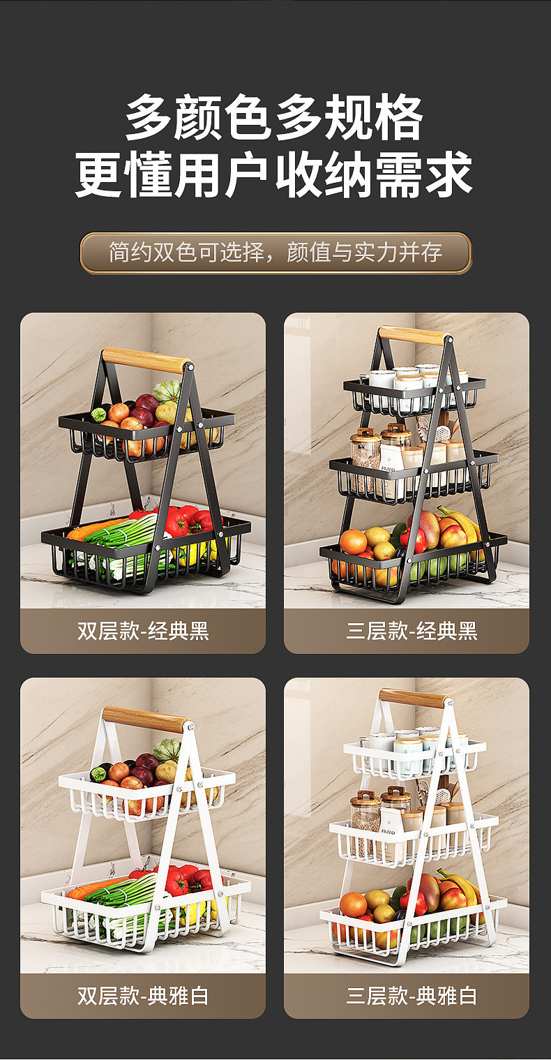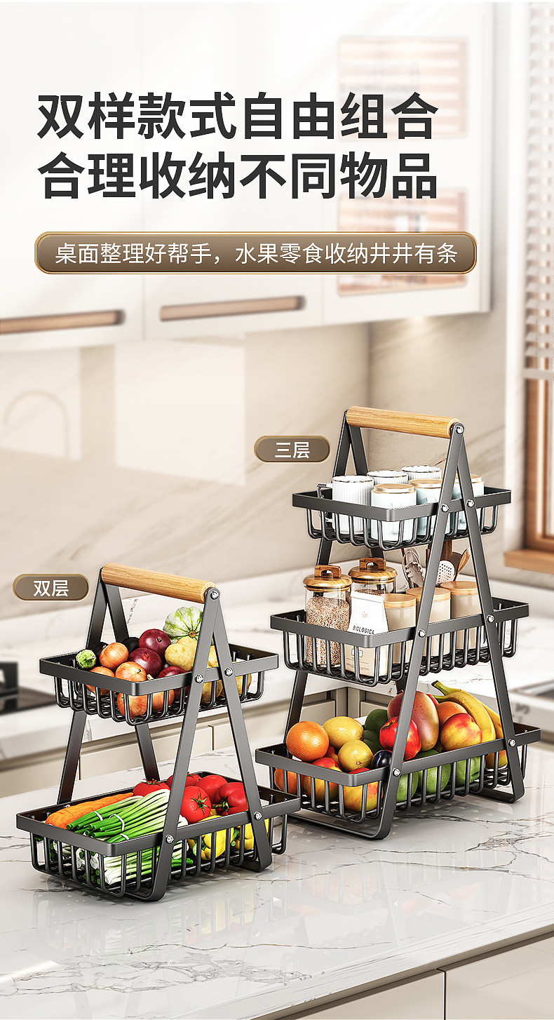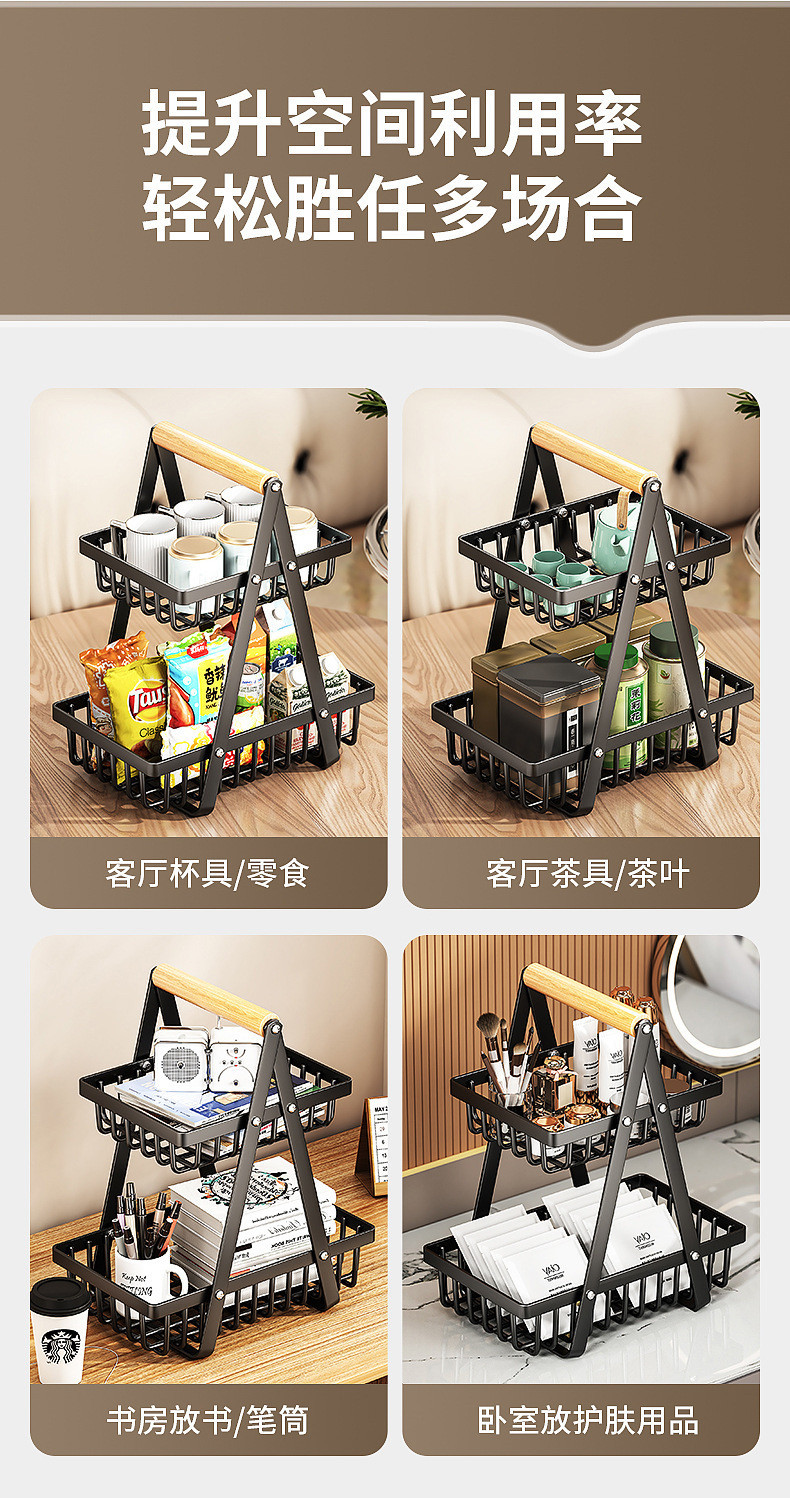 商品名称:可卸拆水果篮双层三层手提篮客厅厨房面包零食收纳篮置物架