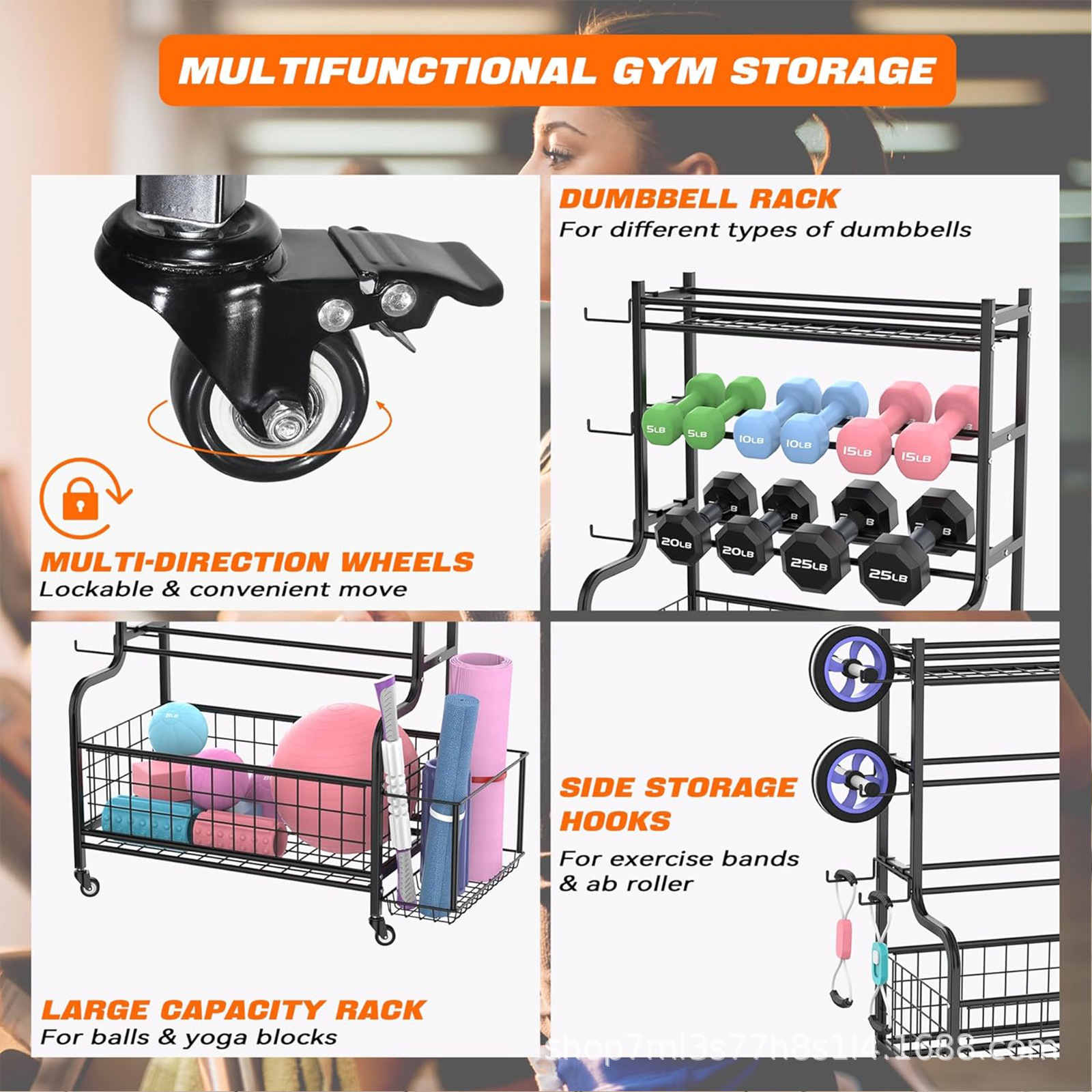 商品名称:整理架运动健身器材篮筐带轮瑜伽垫置物架多功能收纳架
