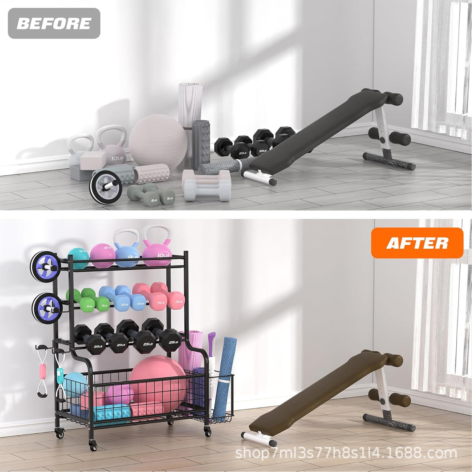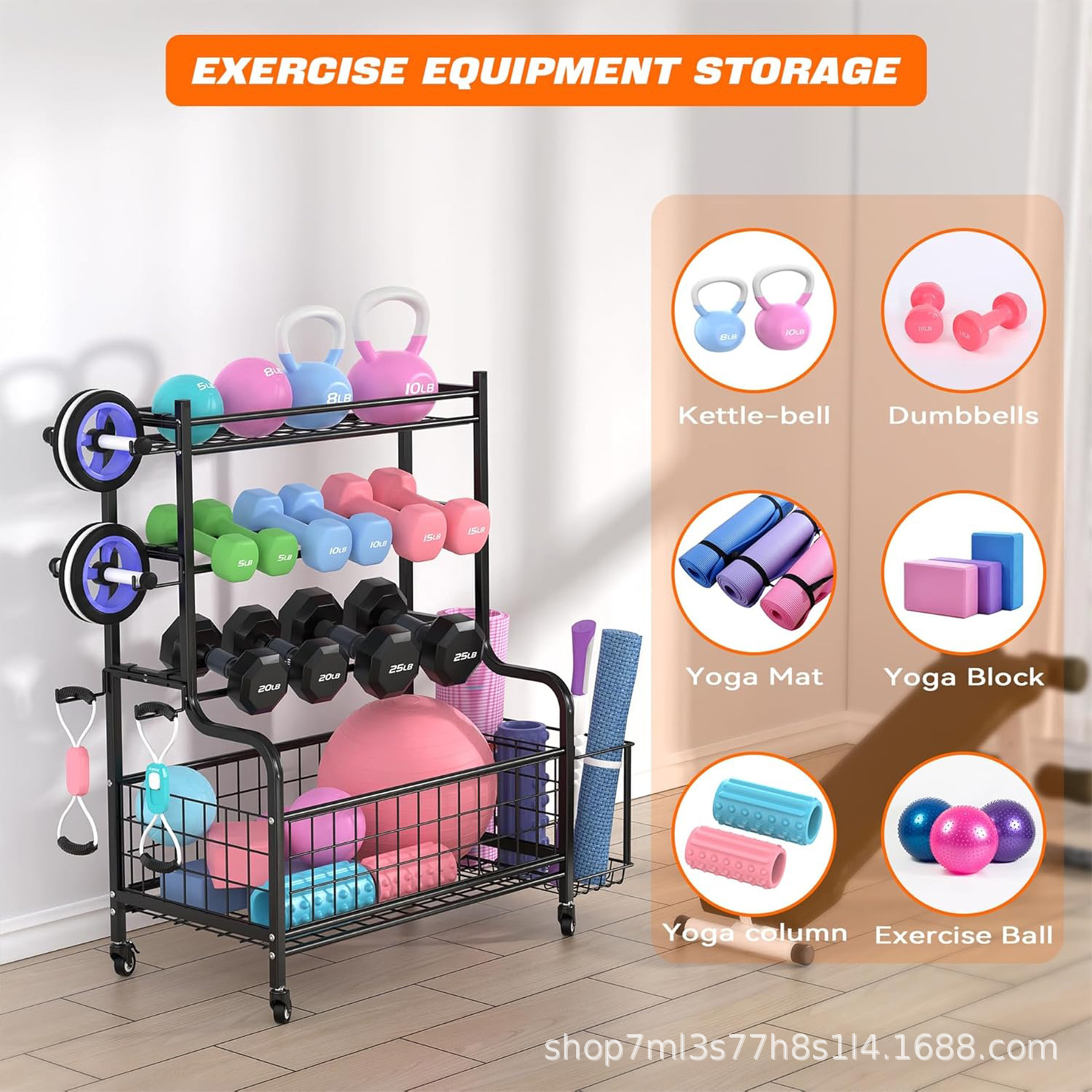 整理架运动健身器材篮筐带轮瑜伽垫置物架多功能收纳架