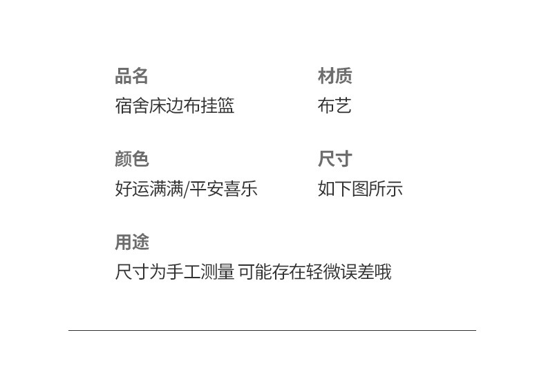 商品名称:宿舍床边收纳挂袋床头置物架寝室上下铺神器学生床上杂物整理挂篮