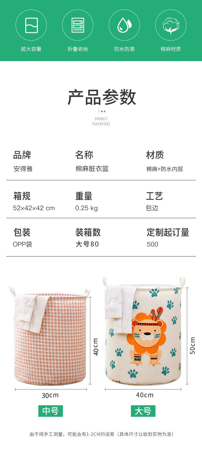 商品名称:安得雅加厚大容量脏衣篮脏衣篓家用大号可折叠浴室衣服收纳筐