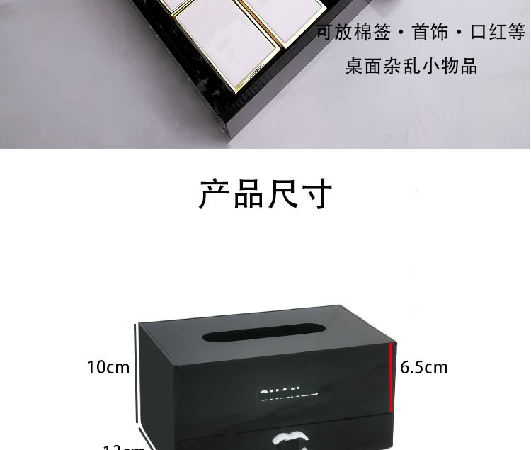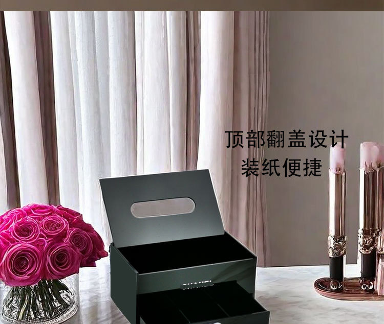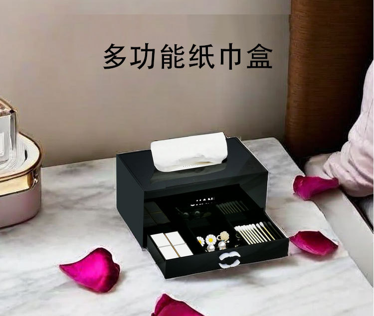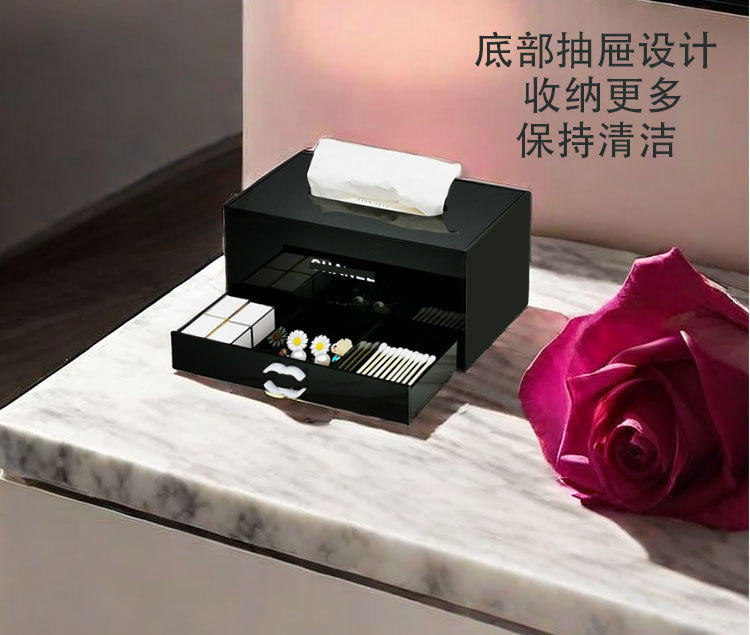商品名称:亚克力多功能带抽屉桌面纸巾盒创简约意轻奢现代家用梳妆台抽纸盒