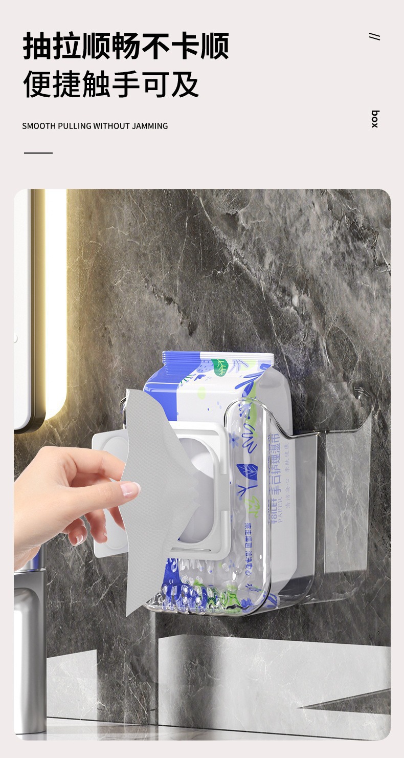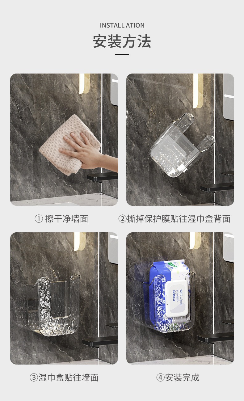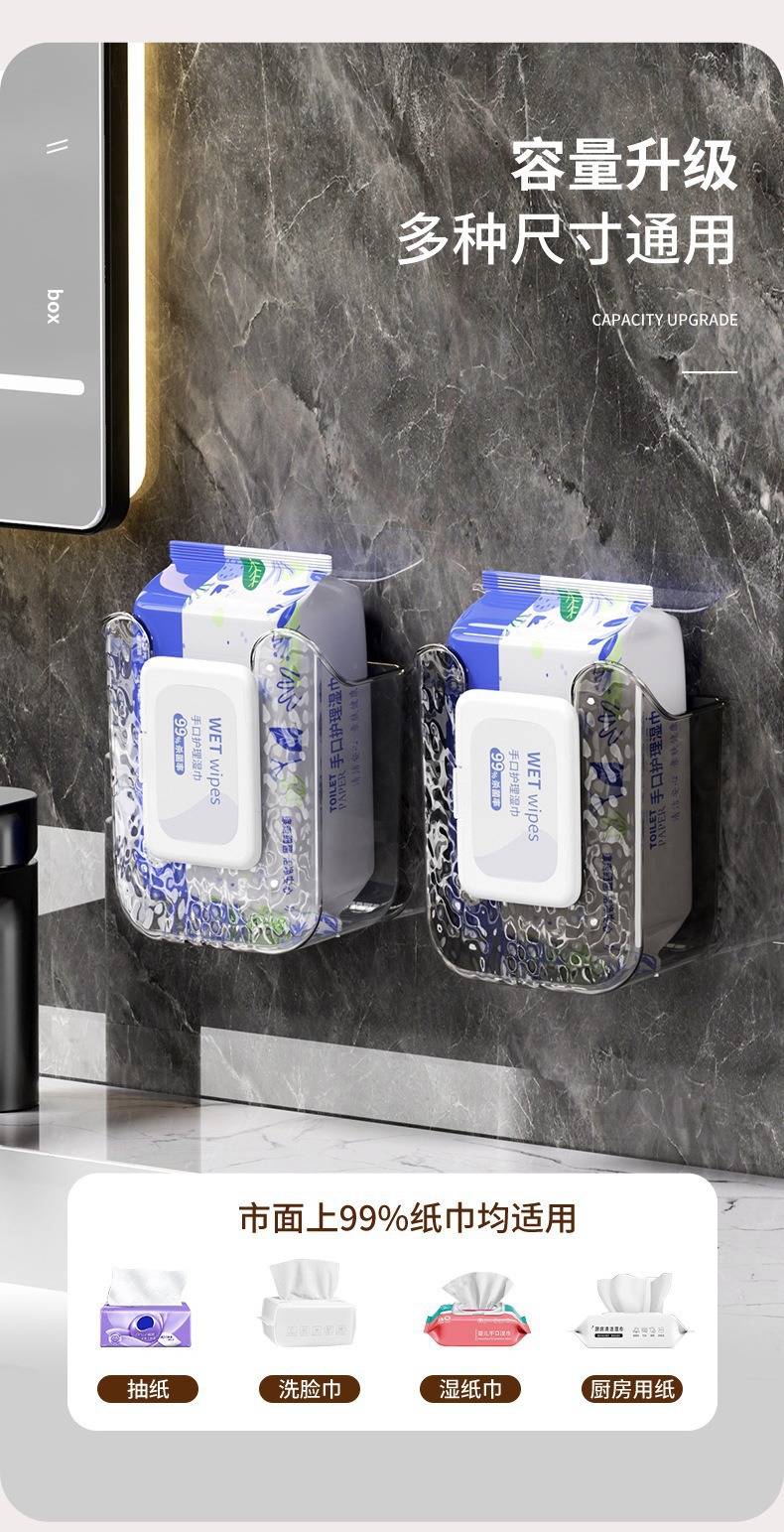 商品名称:家用轻奢壁挂式洗脸巾湿巾收纳盒卫生间壁挂式纸巾盒免打孔抽纸盒