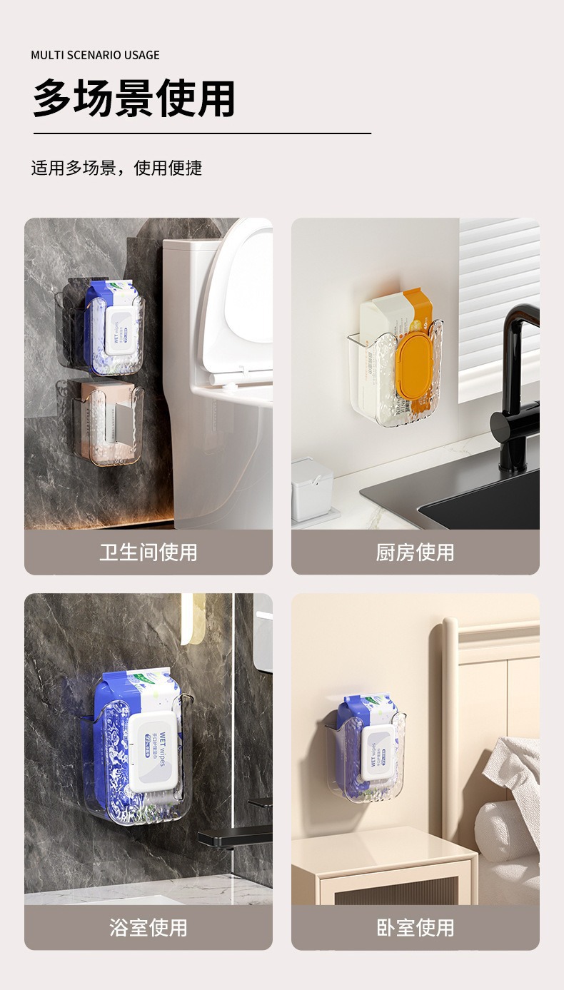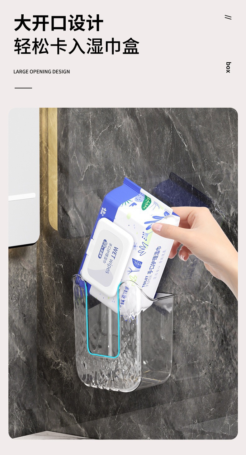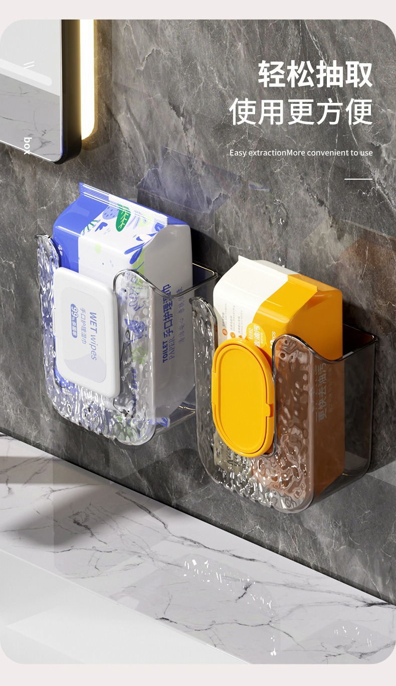 商品名称:家用轻奢壁挂式洗脸巾湿巾收纳盒卫生间壁挂式纸巾盒免打孔抽纸盒