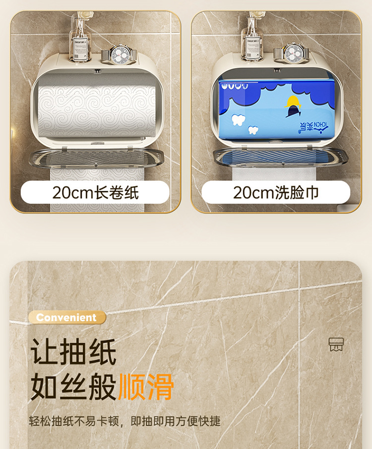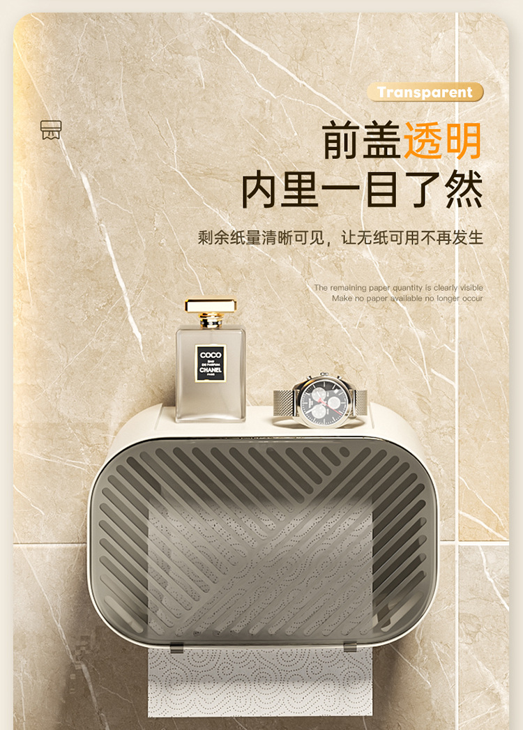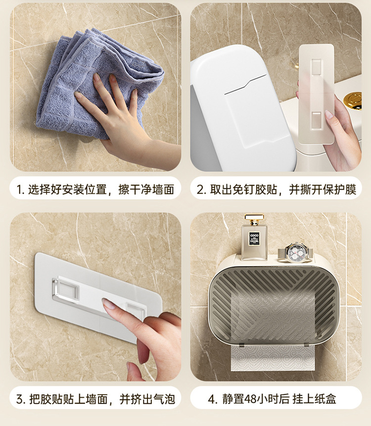 卫生间纸巾盒防水厕纸盒免打孔壁挂式抽纸盒厕所卫生纸卷纸置物架