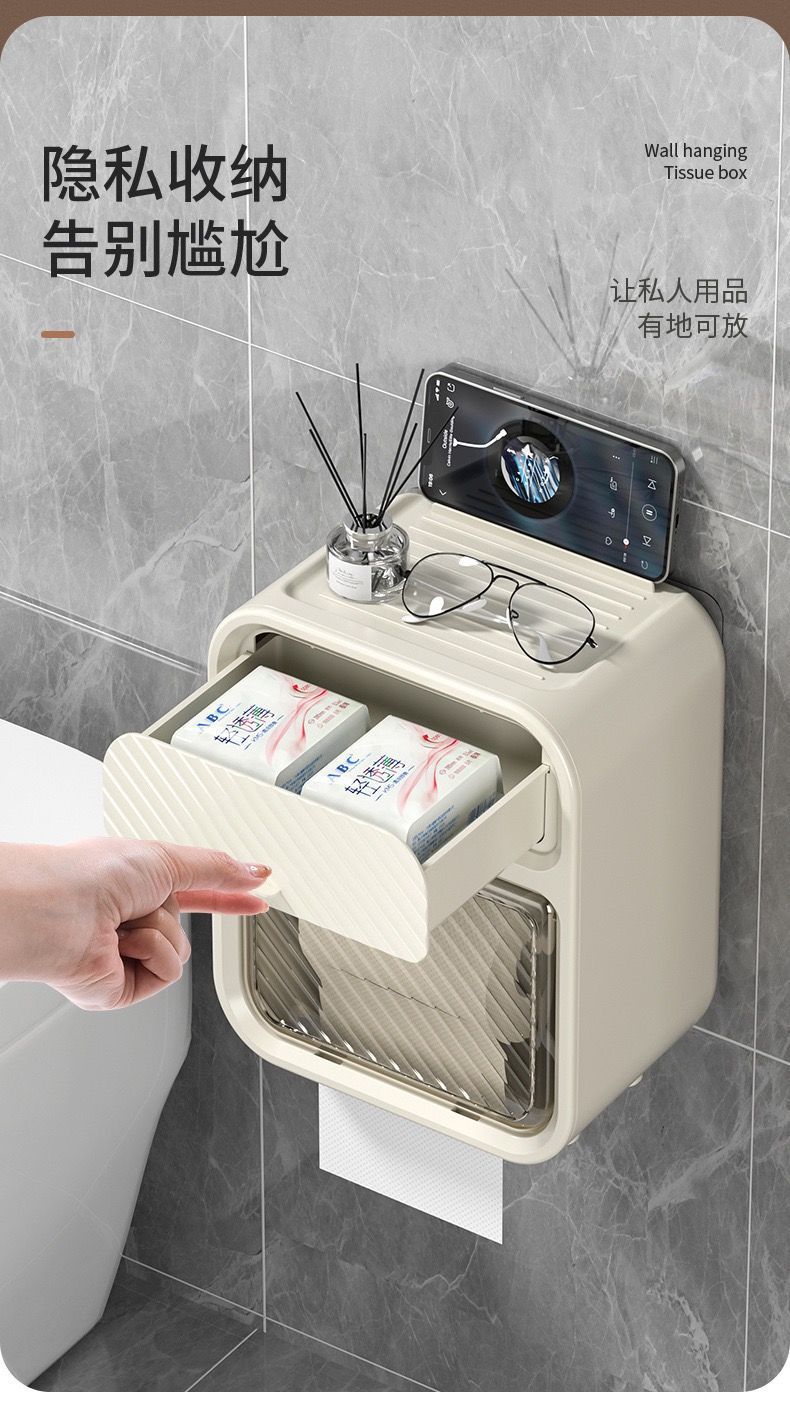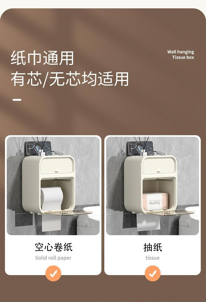 奶油风卫生间纸巾盒浴室免打孔双层置物架壁挂式卷纸抽纸盒