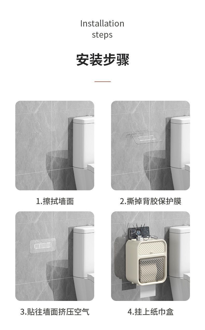 商品名称:奶油风卫生间纸巾盒浴室免打孔双层置物架壁挂式卷纸抽纸盒