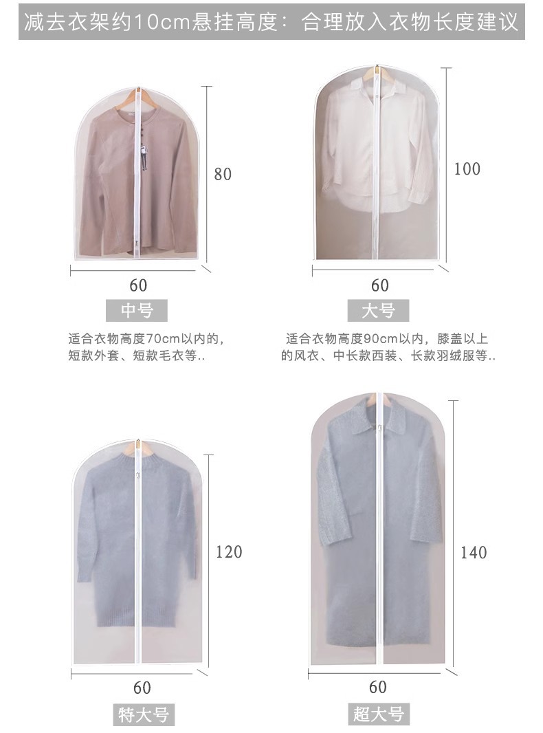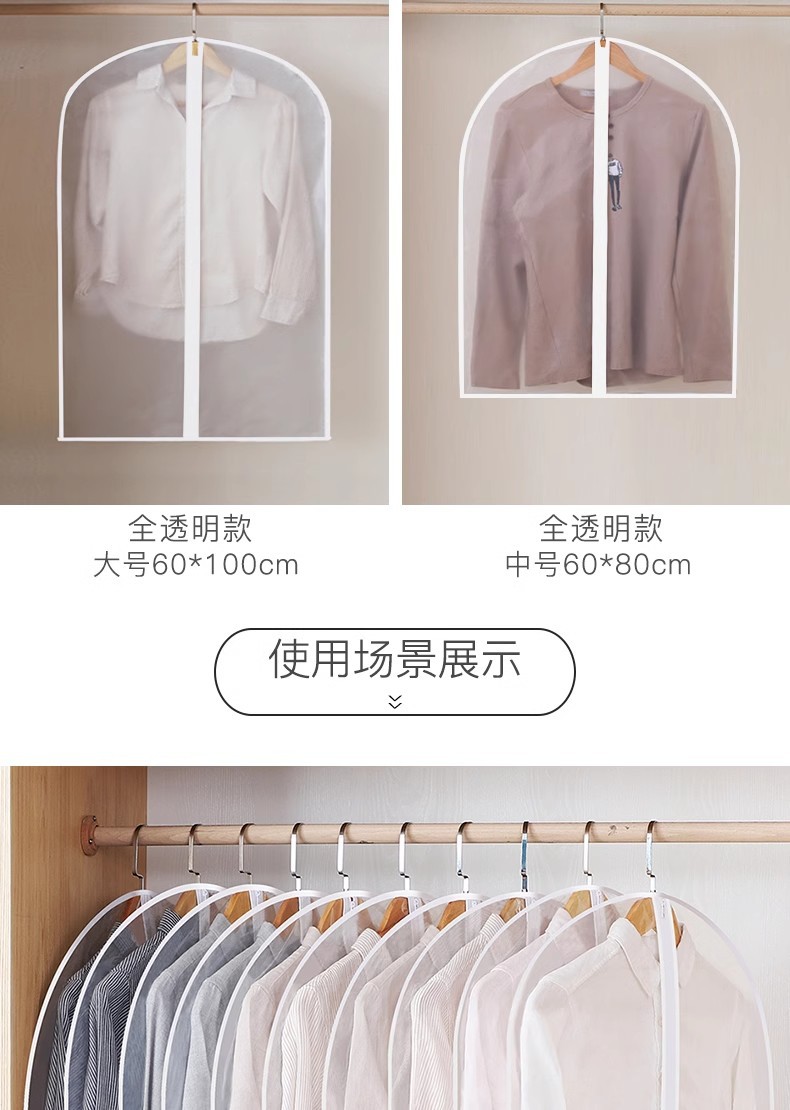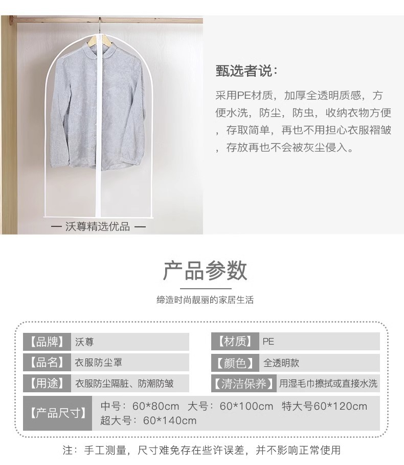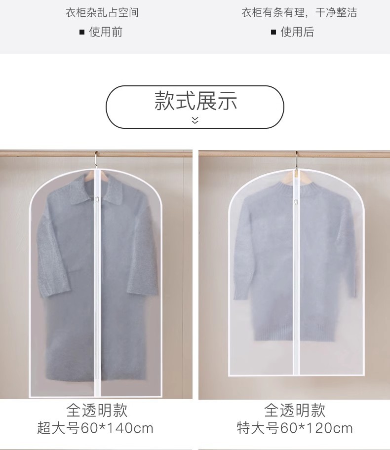 商品名称:可水洗挂衣袋PVC服装防尘罩防潮加厚家用挂式衣服防尘罩工厂
