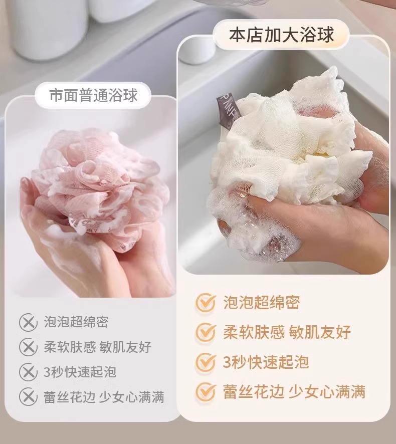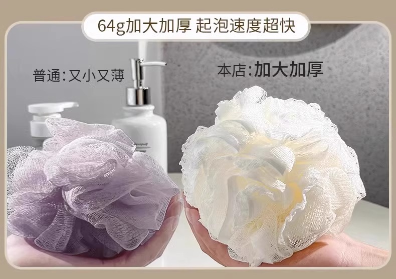 商品名称:新款高档大号不散超柔可爱沐浴球男女儿童搓背起泡泡洗浴不伤皮肤