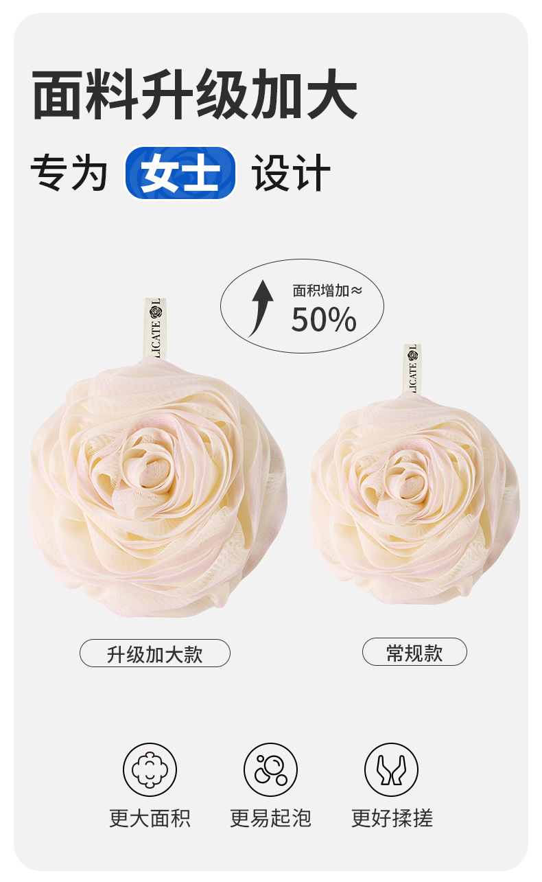商品名称:玫瑰花沐浴球女2025年新款家用浴室专用超柔软起泡不散大号洗澡球