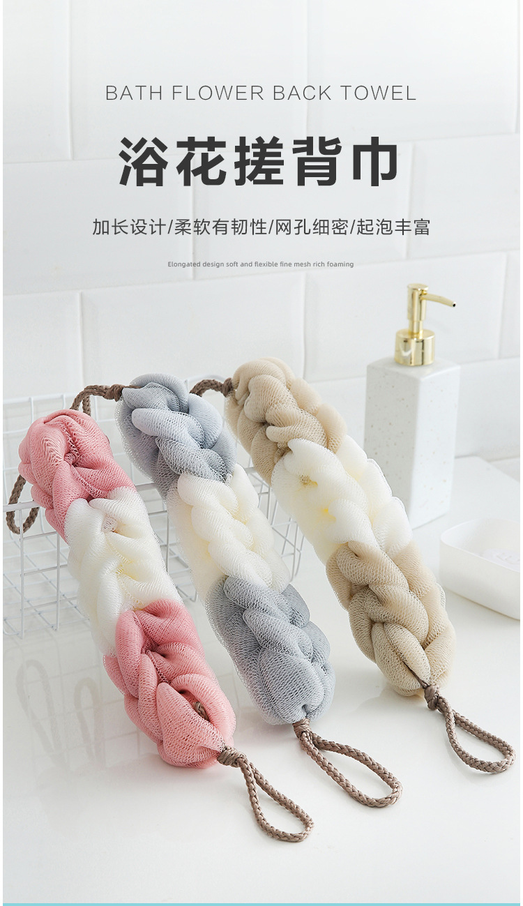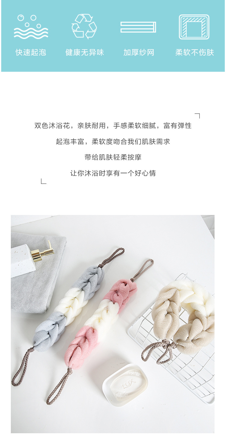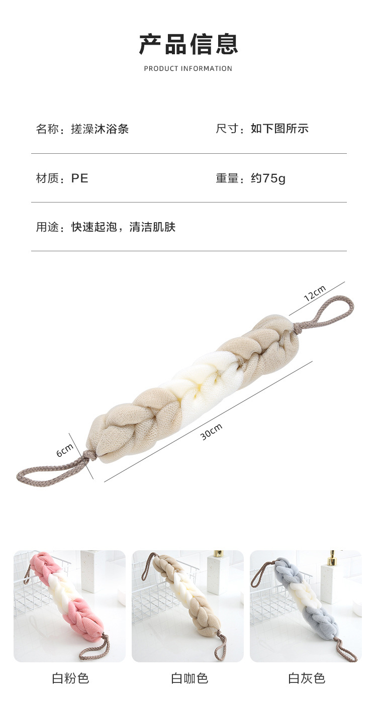商品名称:新款长条沐浴搓澡巾拉背条成人搓背巾沐浴球泡沫强力搓泥神器