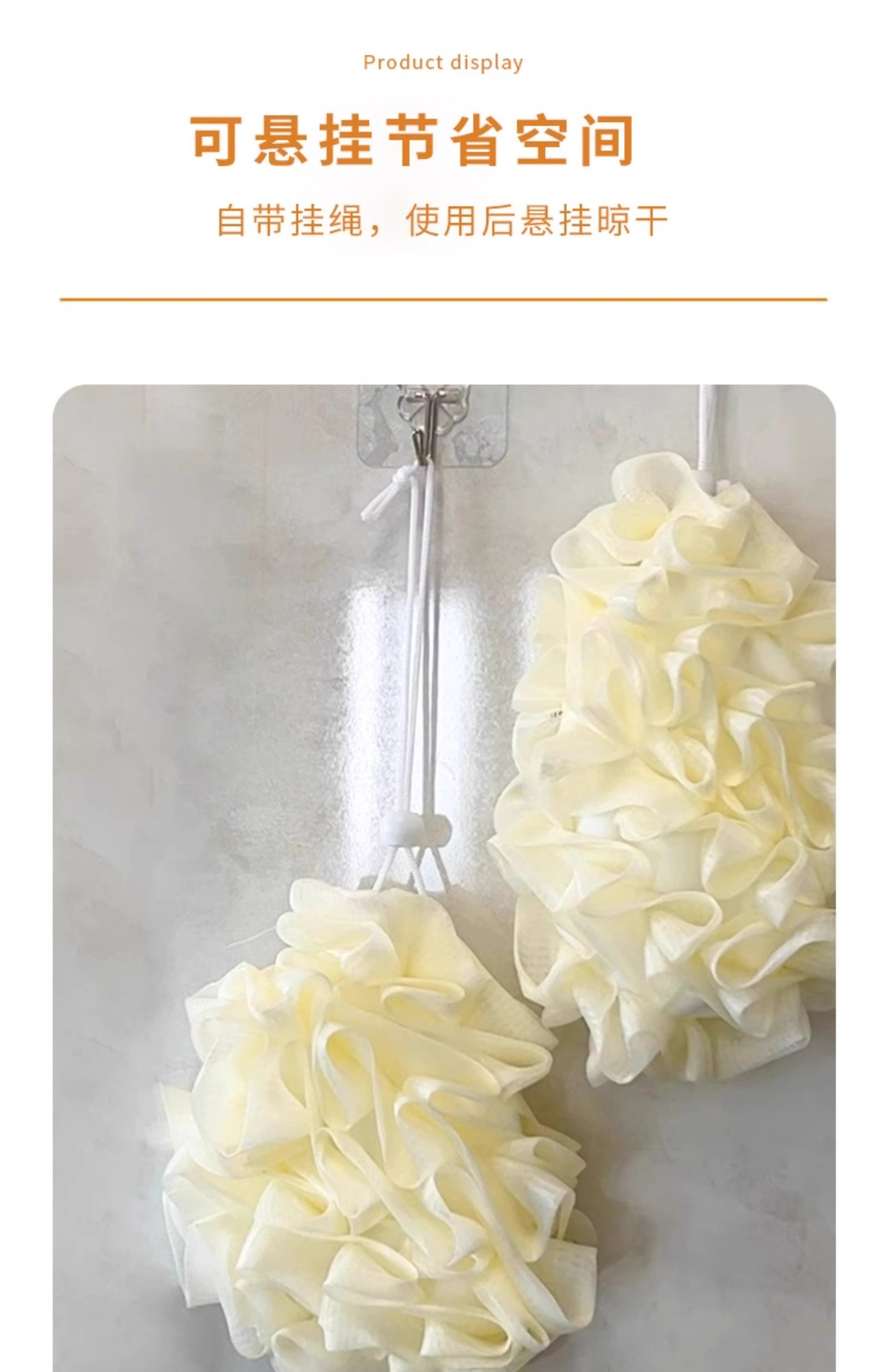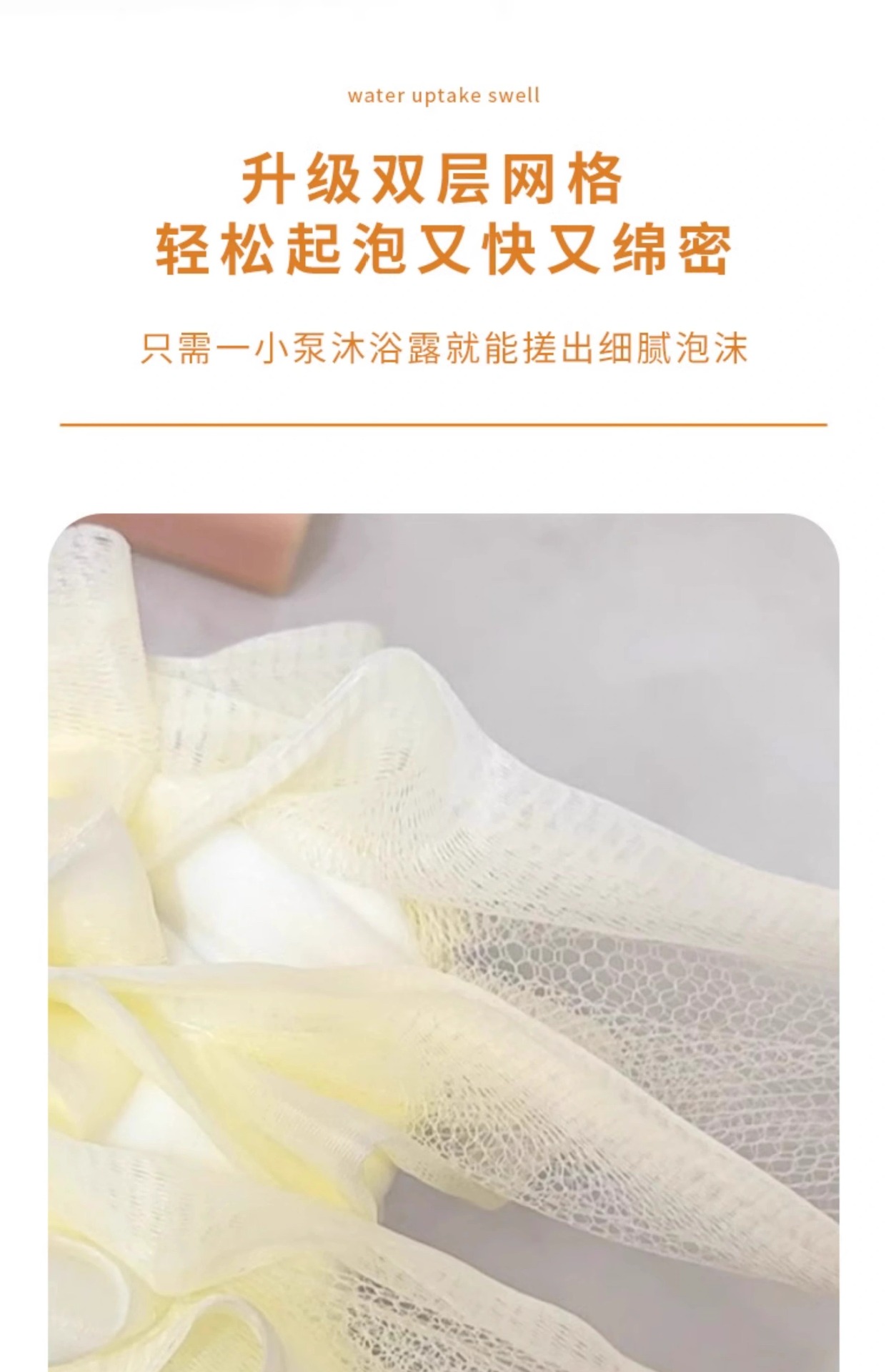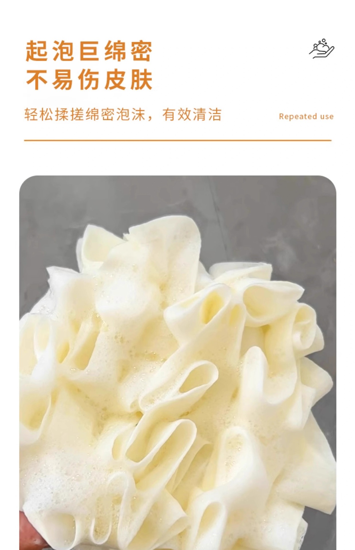 商品名称:新款沐浴球不散花可放香皂浴花球浴室加厚泡沫丰富搓背起泡网肥皂