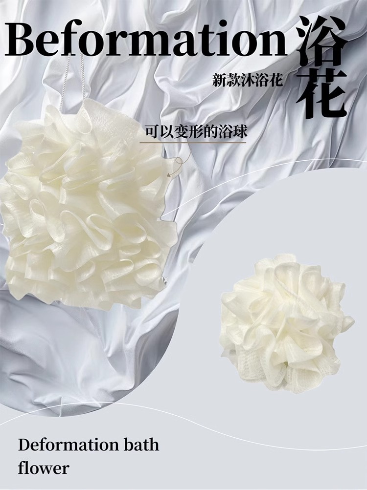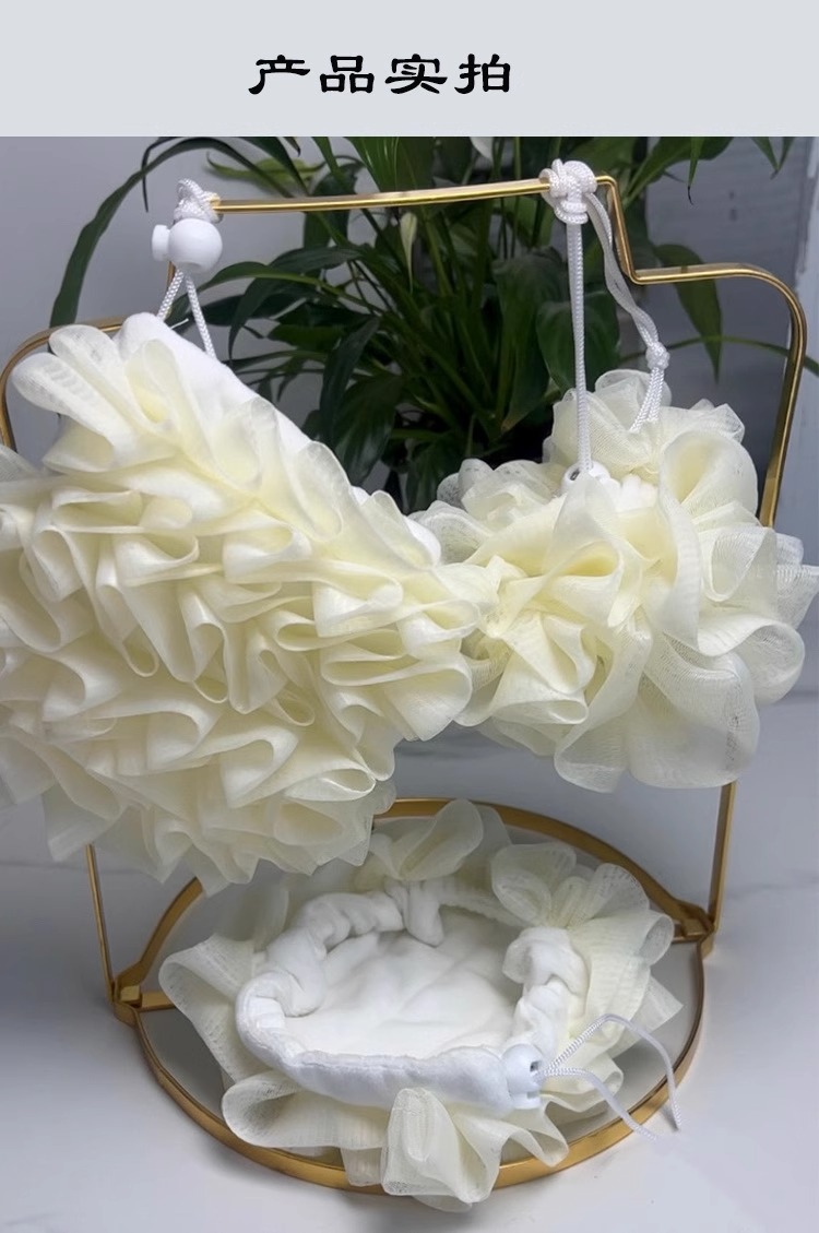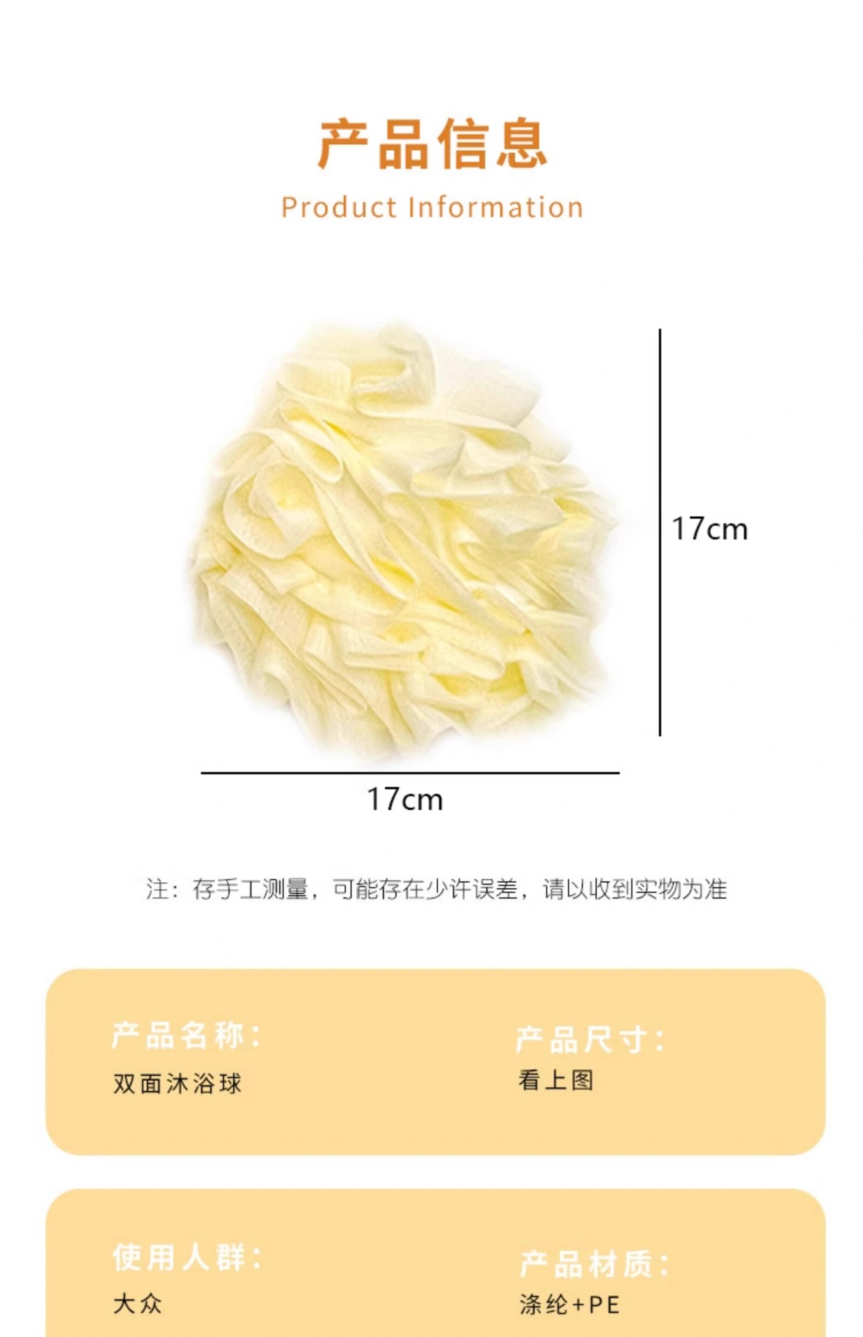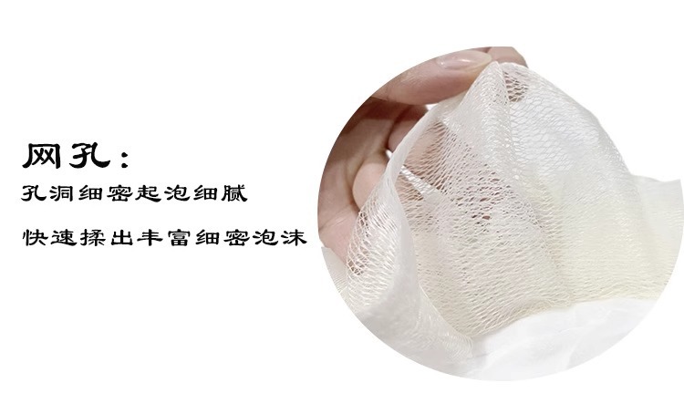 商品名称:新款沐浴球不散花可放香皂浴花球浴室加厚泡沫丰富搓背起泡网肥皂