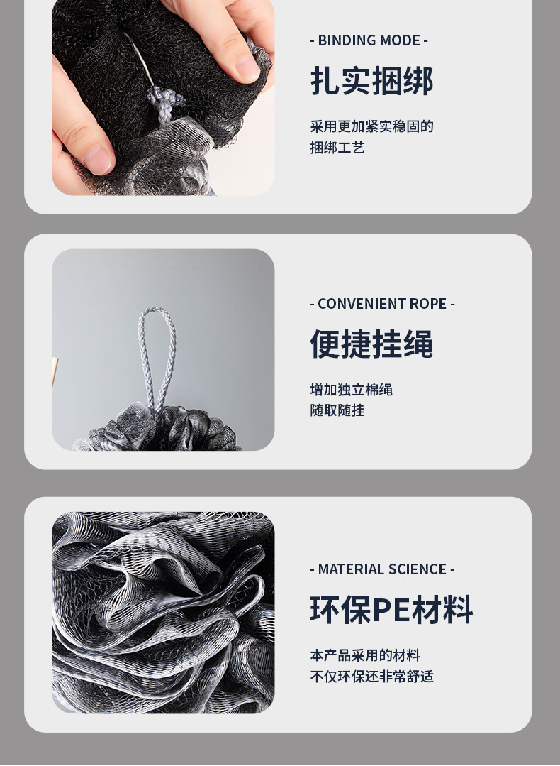 商品名称:沐浴球男用大号高档不散沐浴花男搓澡超柔软不伤肤洗澡起泡泡神器