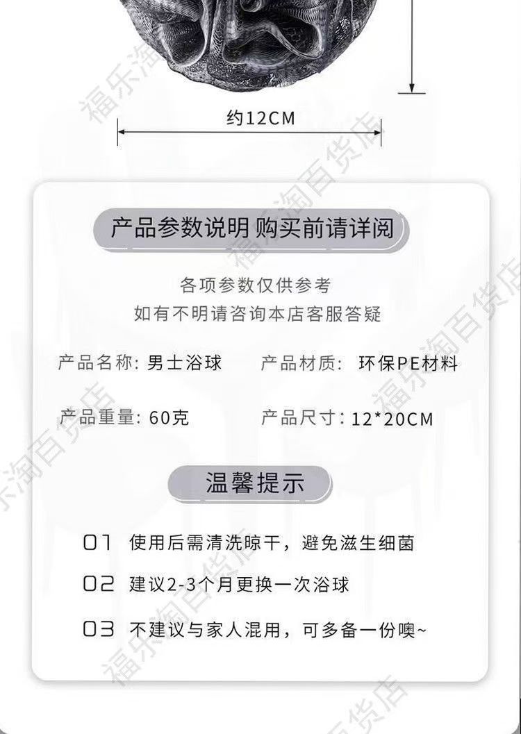 商品名称:男士专用沐浴球搓澡超柔软抑菌除螨加大浴花不散泡澡球搓背新款
