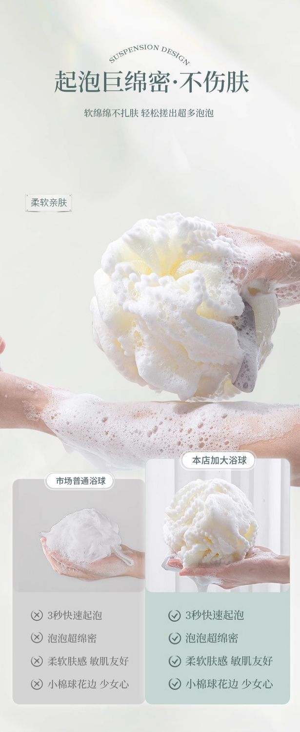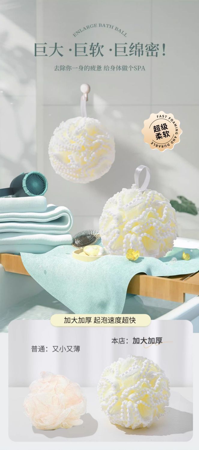 商品名称:2个沐浴球少女洗澡起泡球高档超柔软成人搓澡可爱浴花球泡沫
