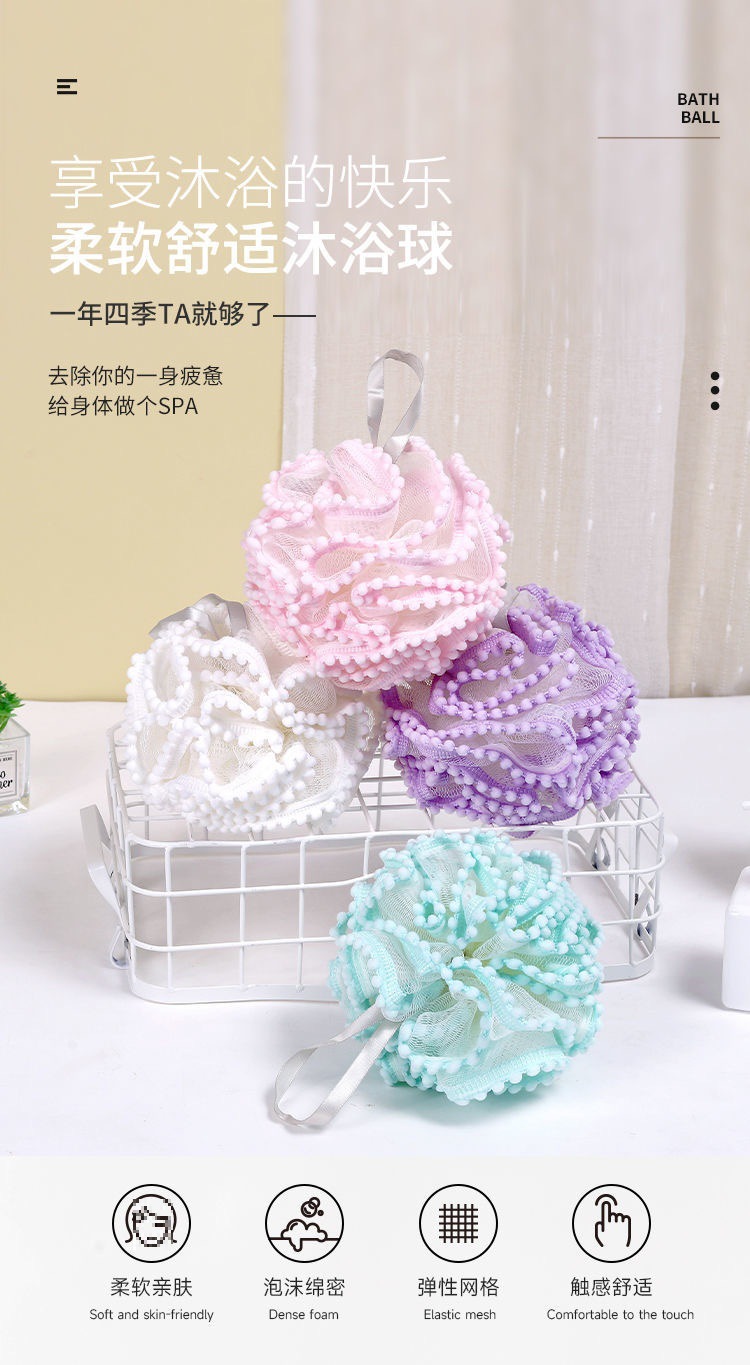 商品名称:大号沐浴球雪球浴花柔软泡澡球可爱搓澡搓背起泡洗浴用品洗澡巾
