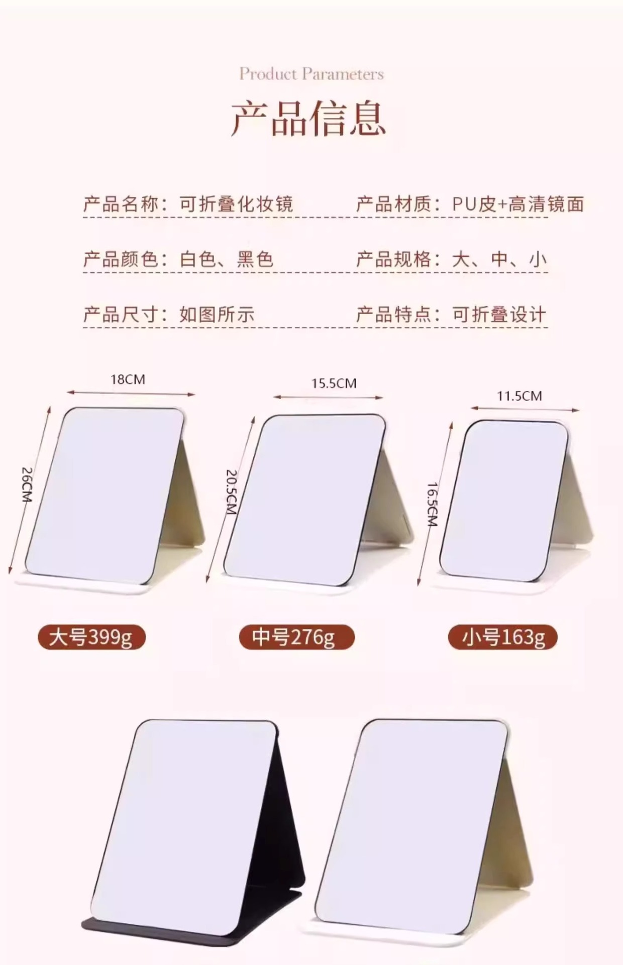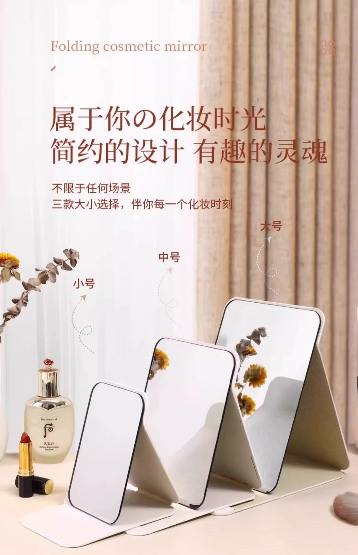 可折叠全面 屏学生宿舍用梳妆镜台式桌面旅行便携女小众高级ins感