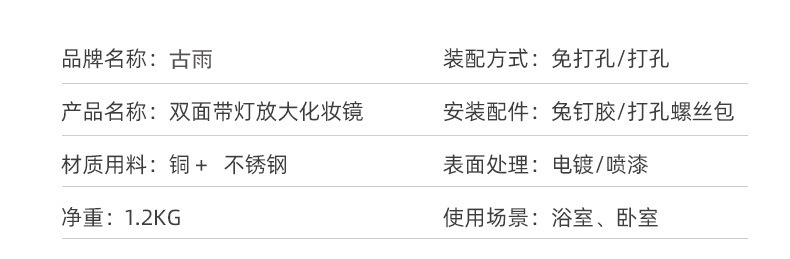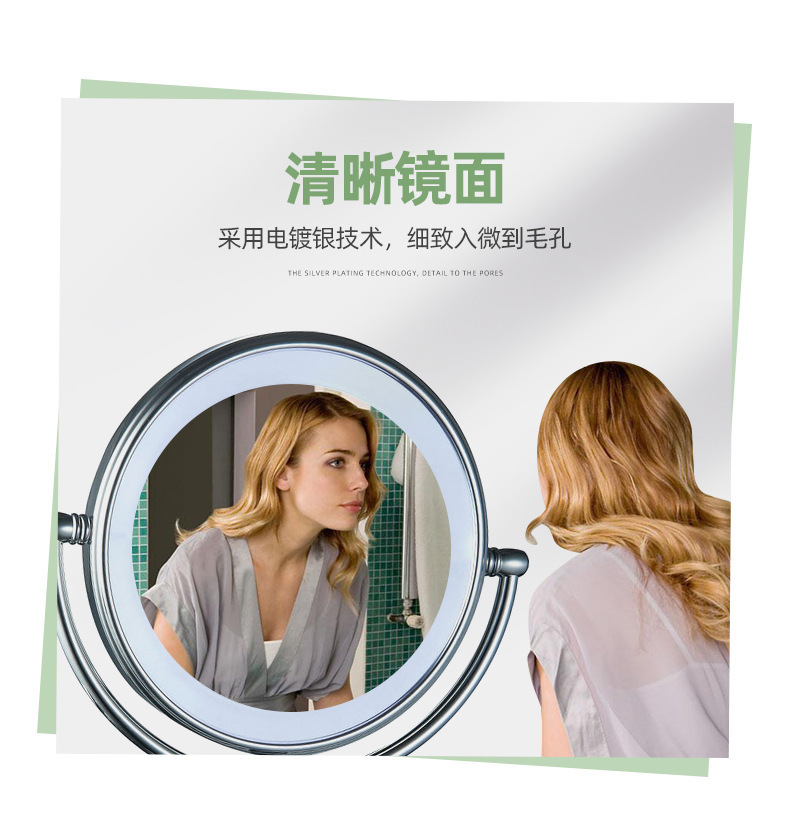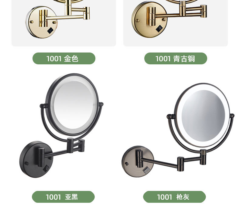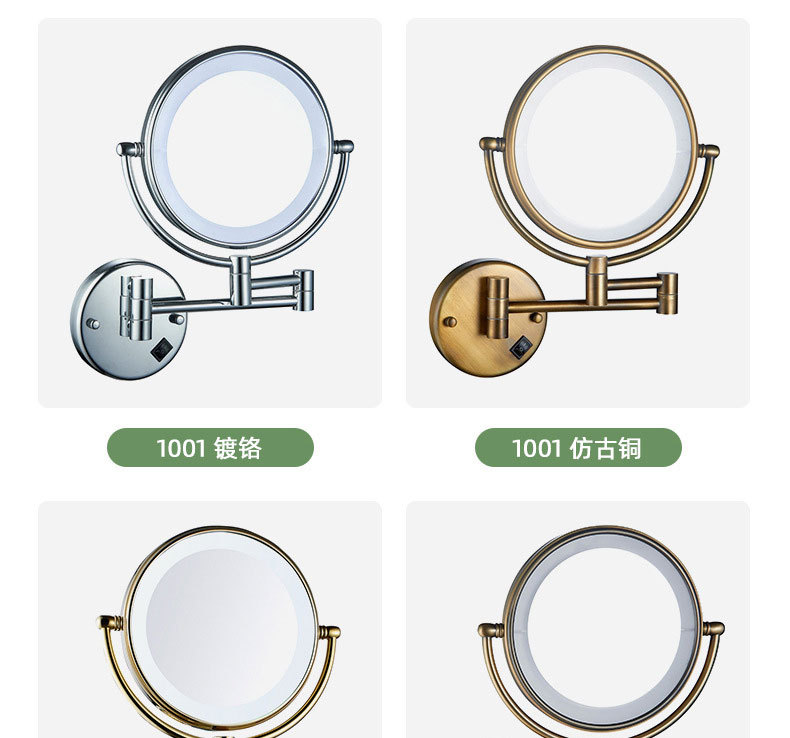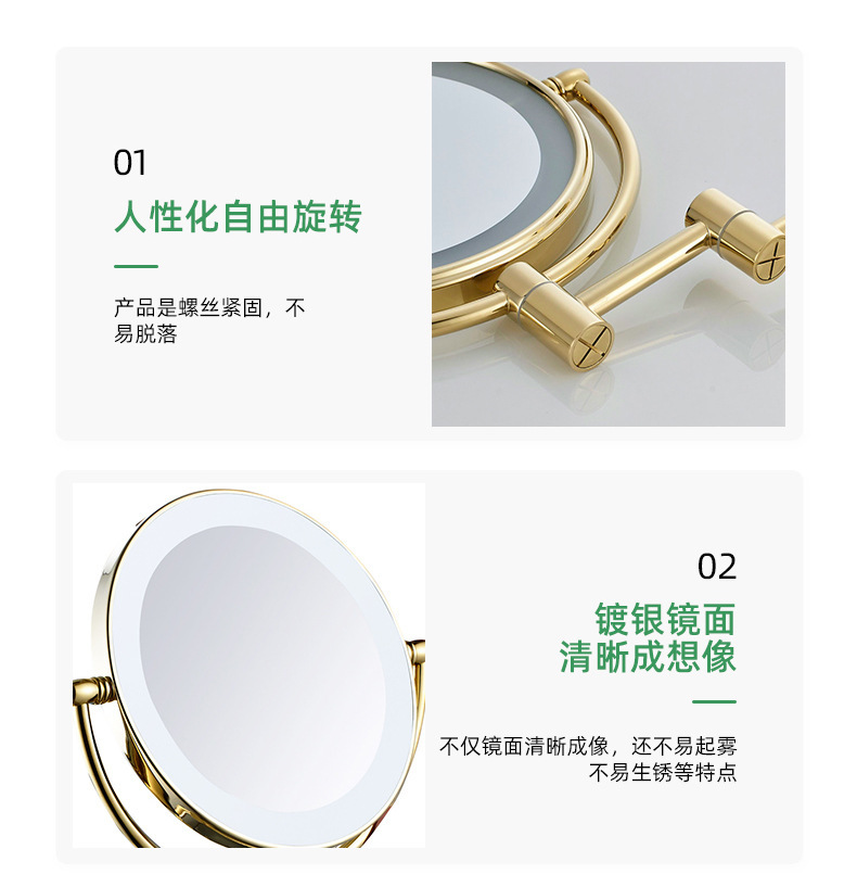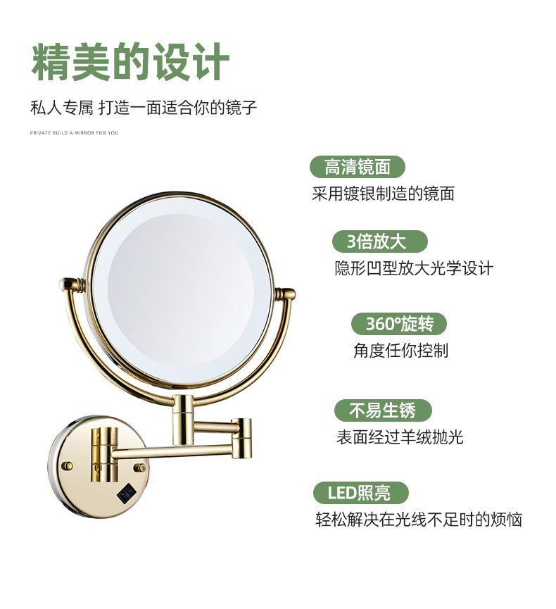 商品名称:浴室8英寸led化妆镜双面壁挂式放大折叠智能带灯美容剃须镜子