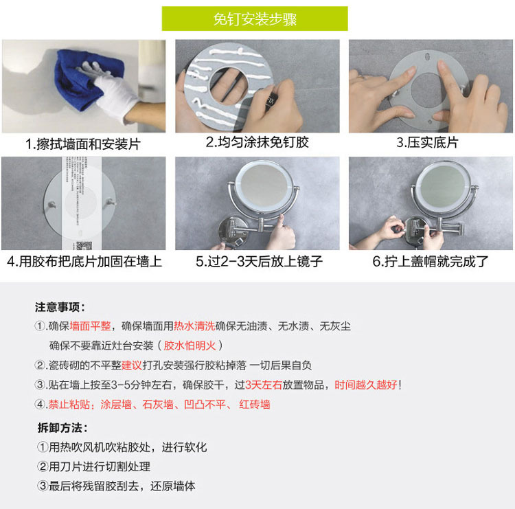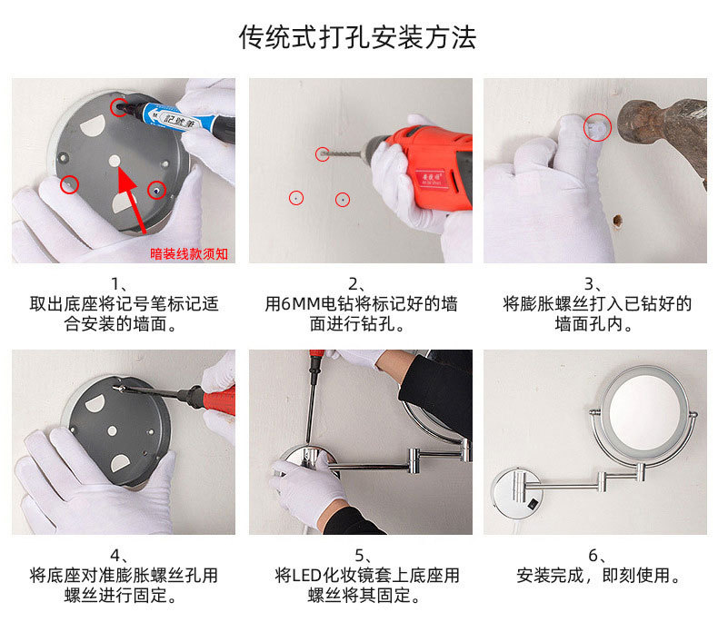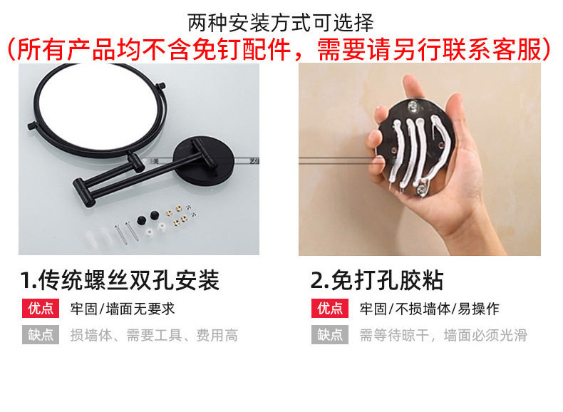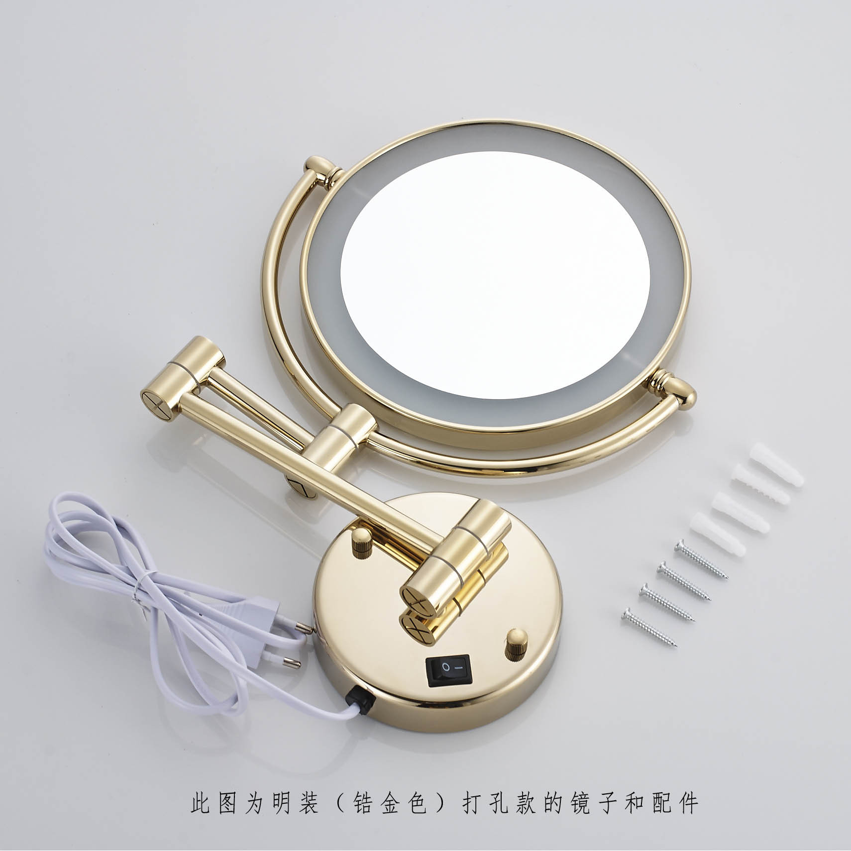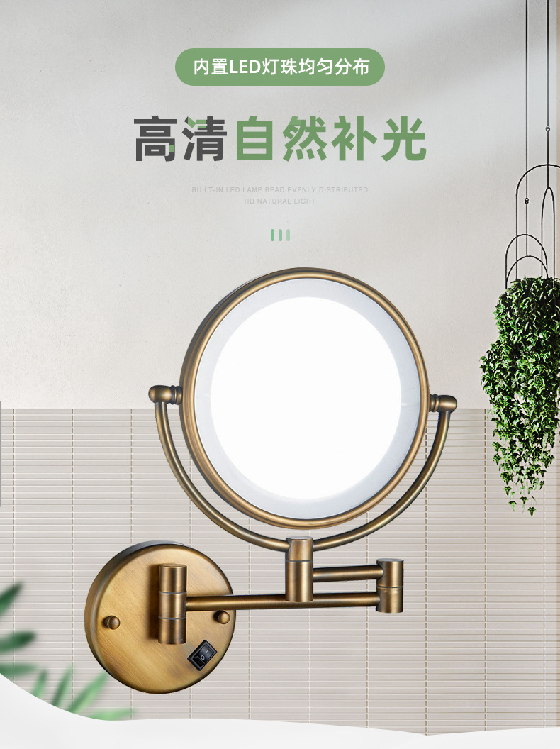 浴室8英寸led化妆镜双面壁挂式放大折叠智能带灯美容剃须镜子