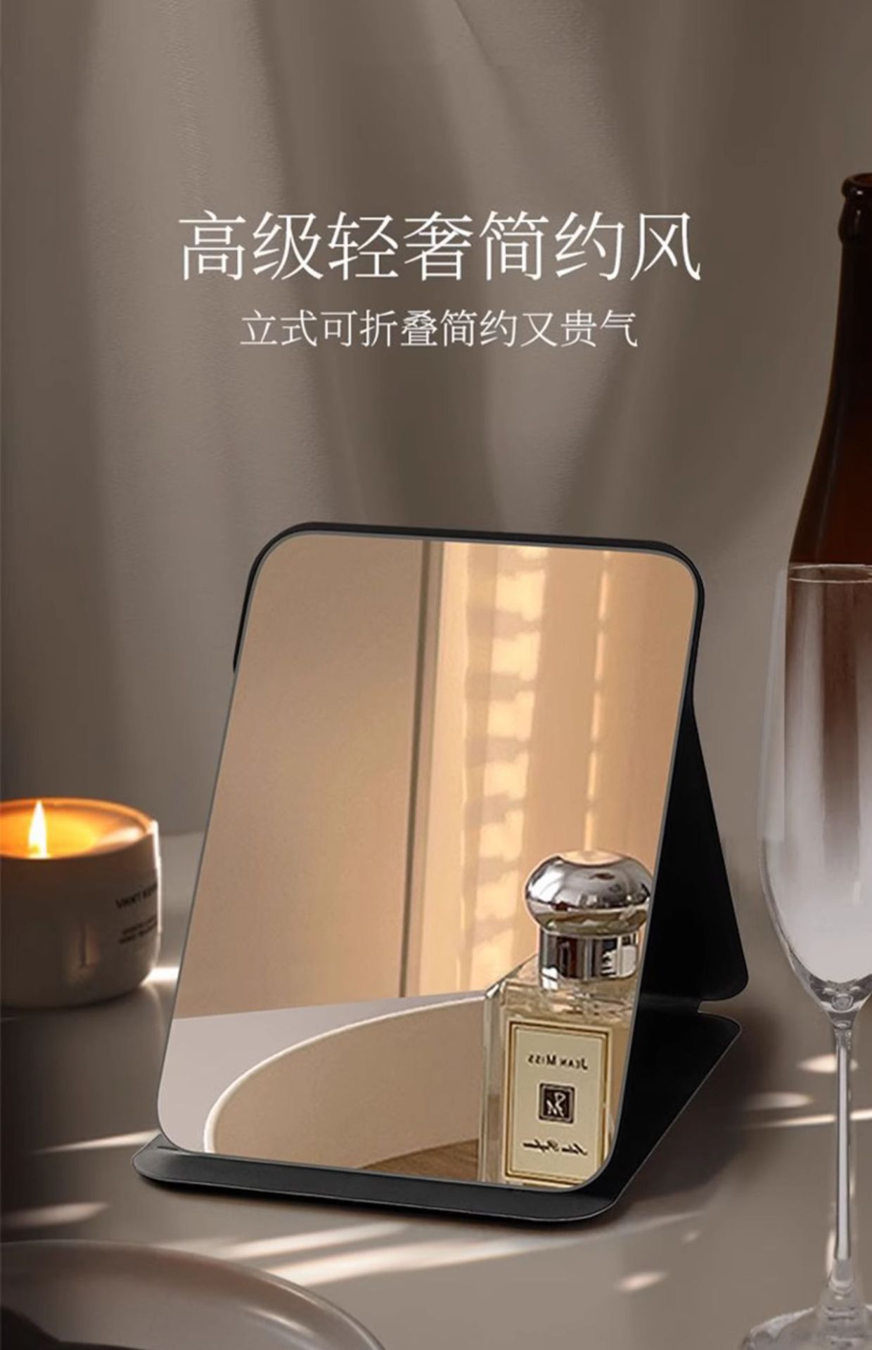 轻奢折叠镜【黑色大号】PU皮质