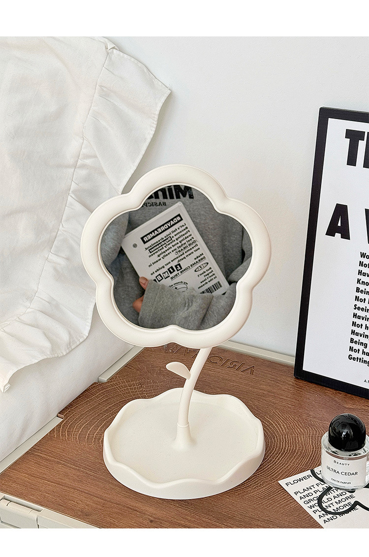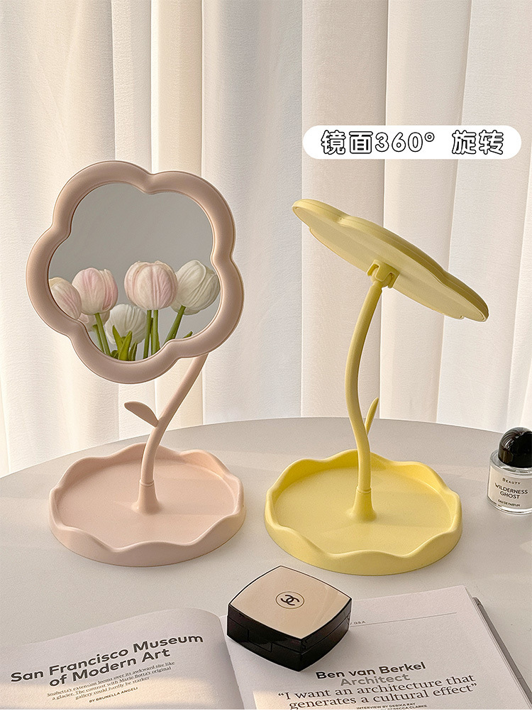ins花朵化妆镜少女心可旋转桌面台式梳妆镜学生宿舍便携补妆镜子