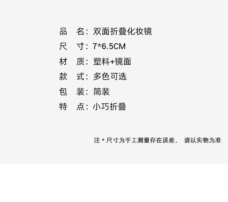 商品名称:【新人0.01元3个】可折叠随身携带迷你化妆镜双面便携手持折叠镜