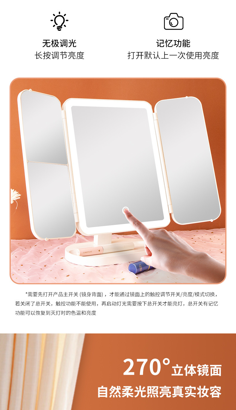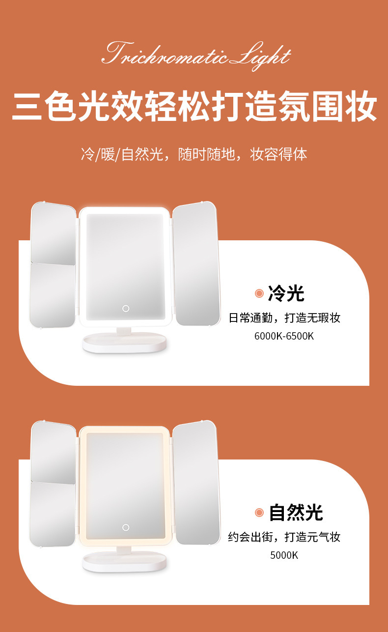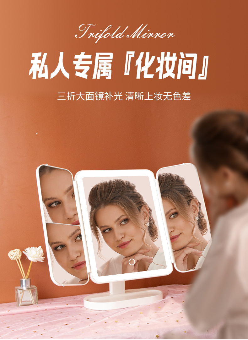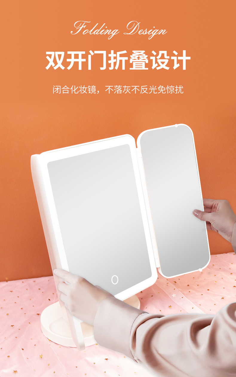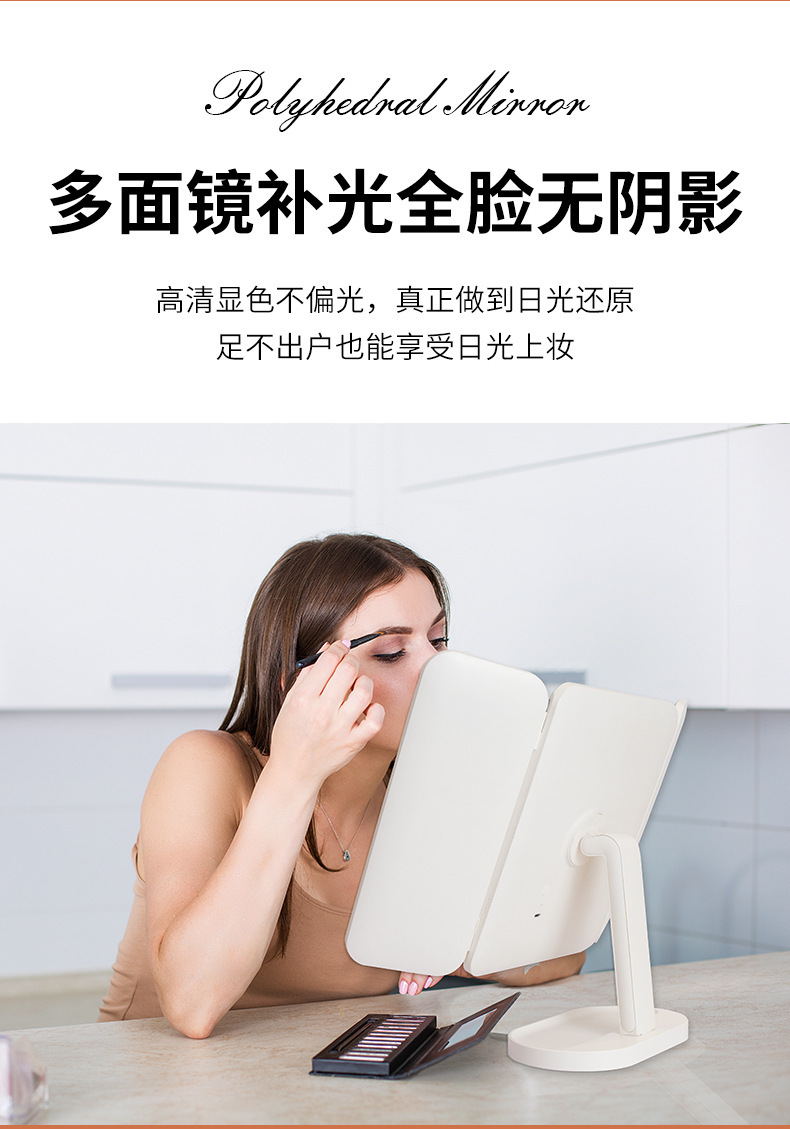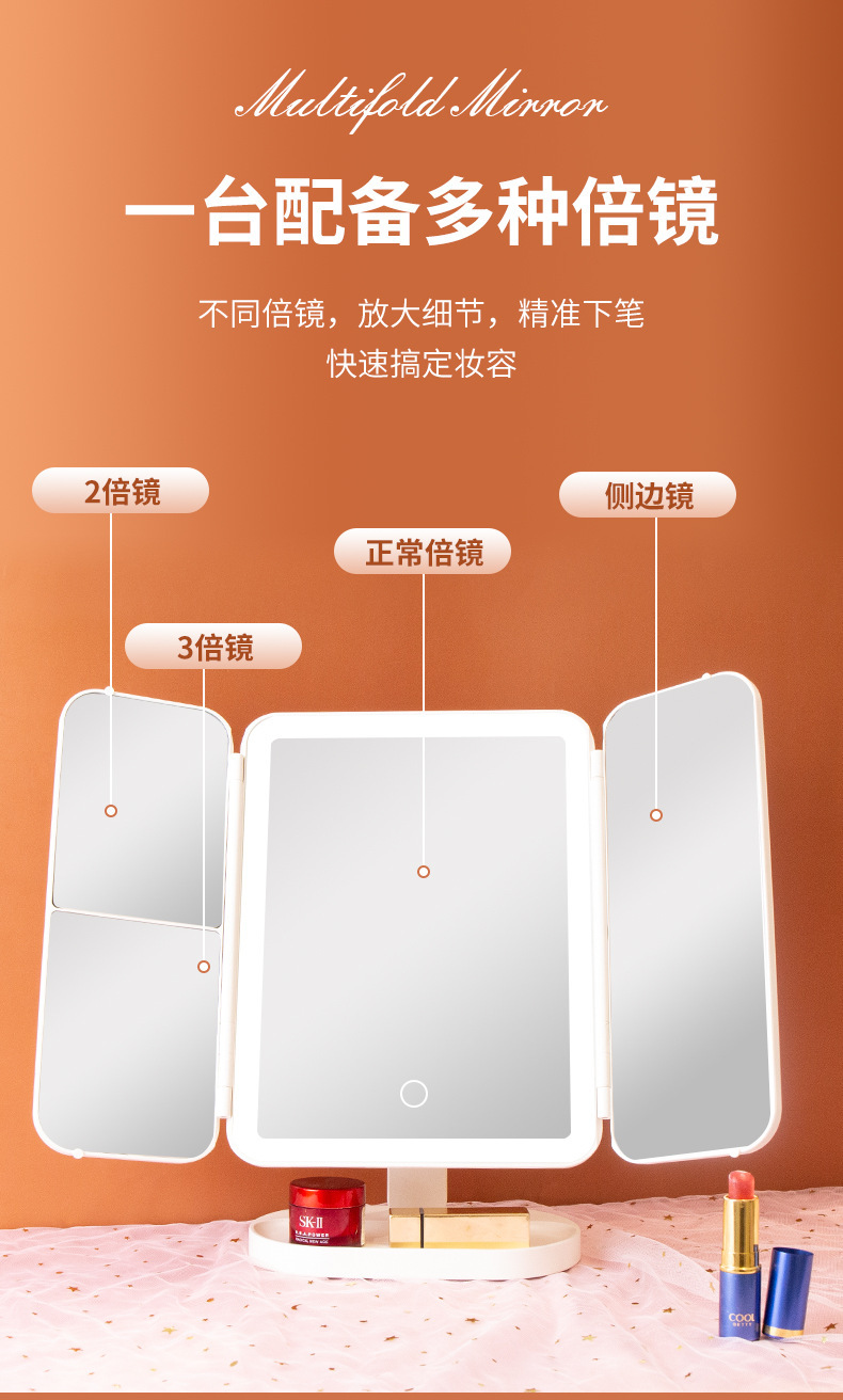 商品名称:新款智能led化妆镜带灯 卧室三折叠台式补光贝壳磨砂美妆镜子