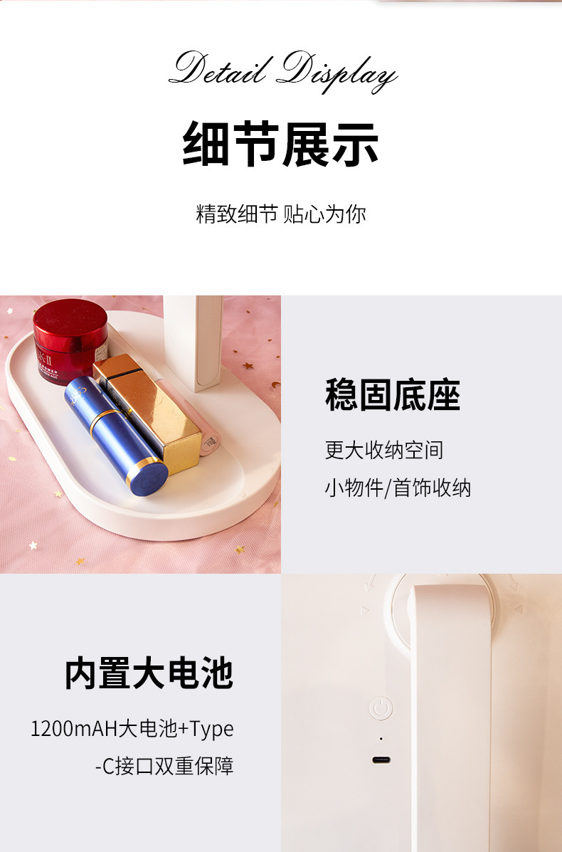 升级款-磨砂纹双开门椭圆底粉色化妆镜(充电款)