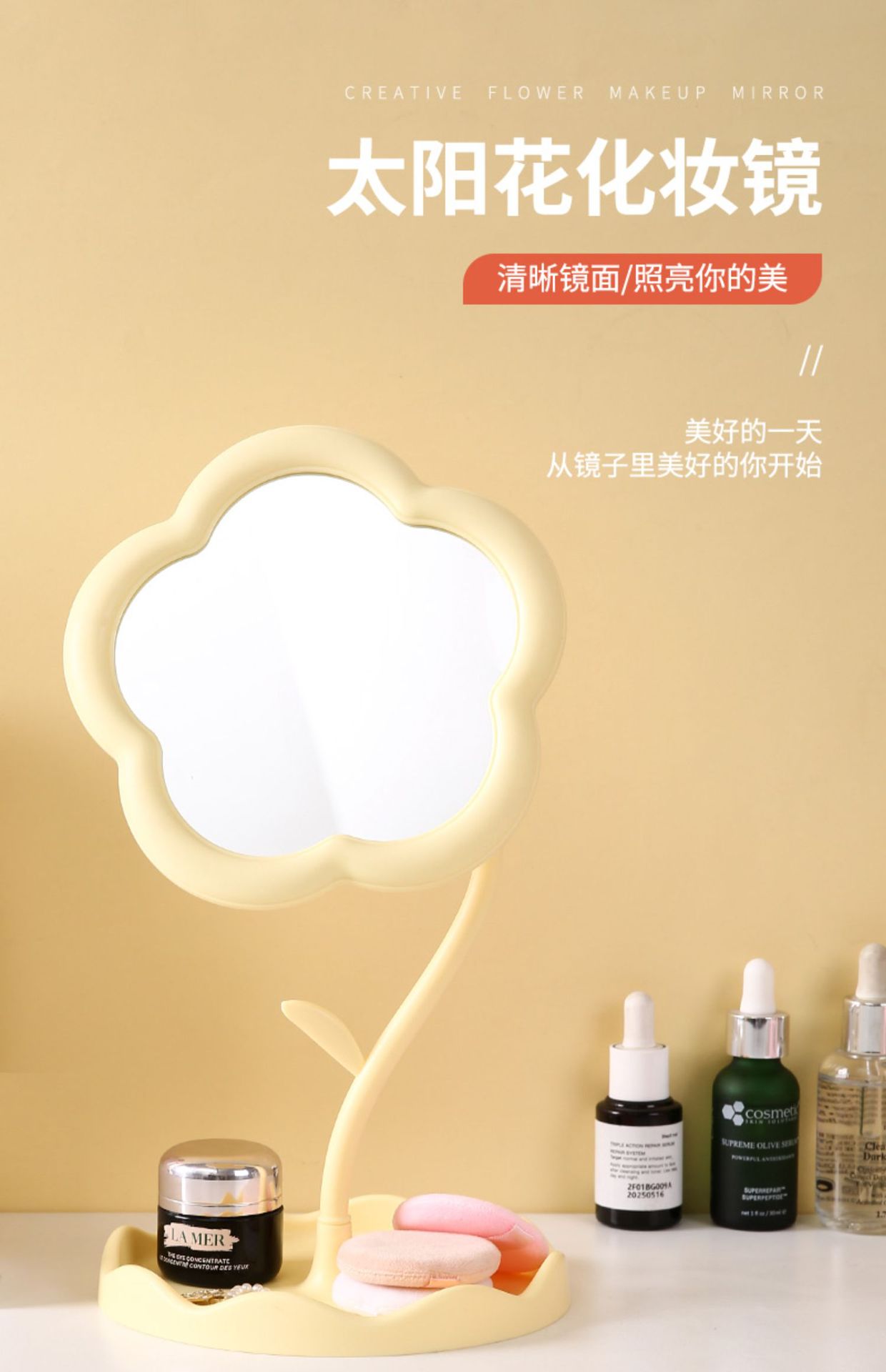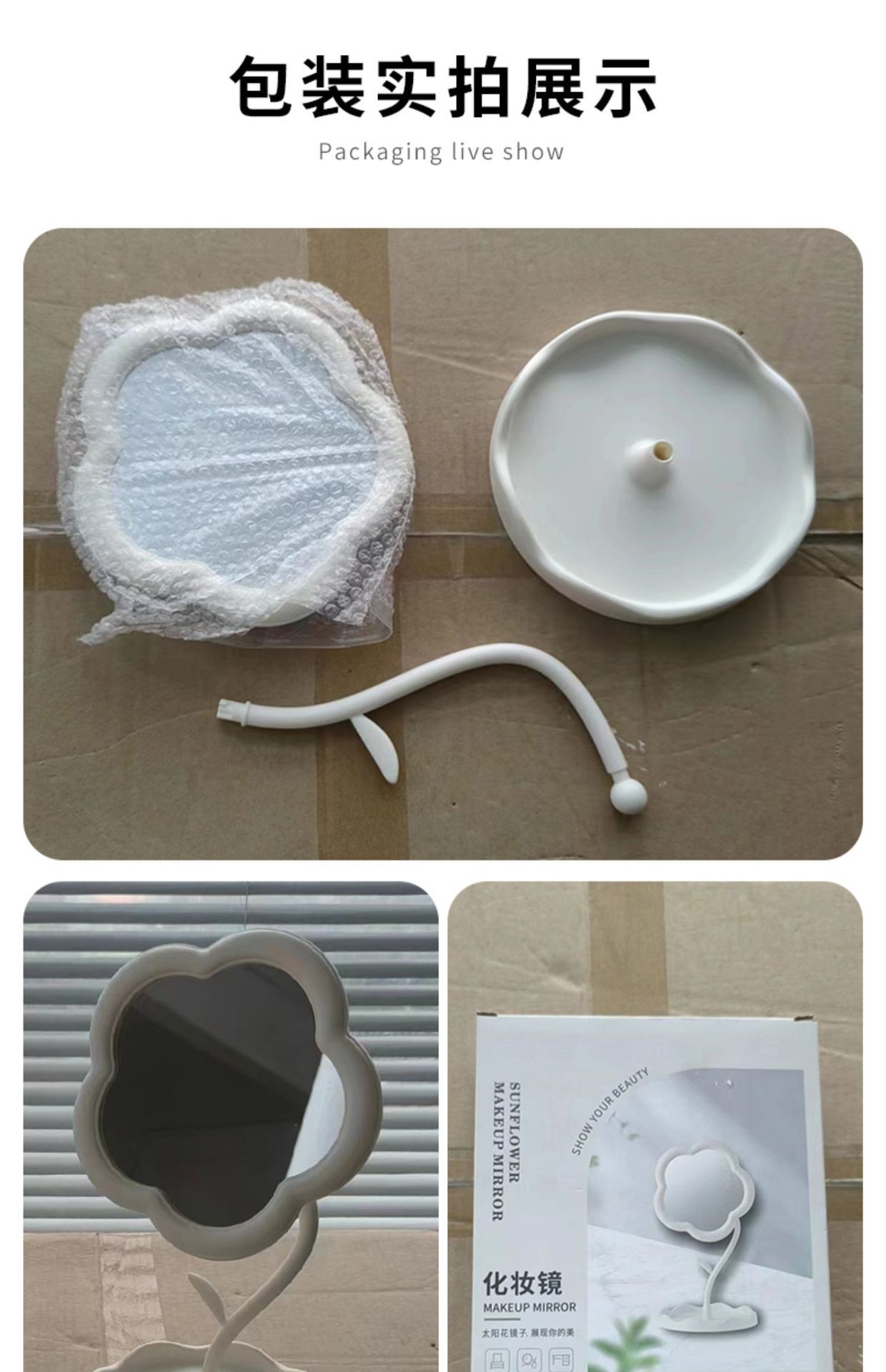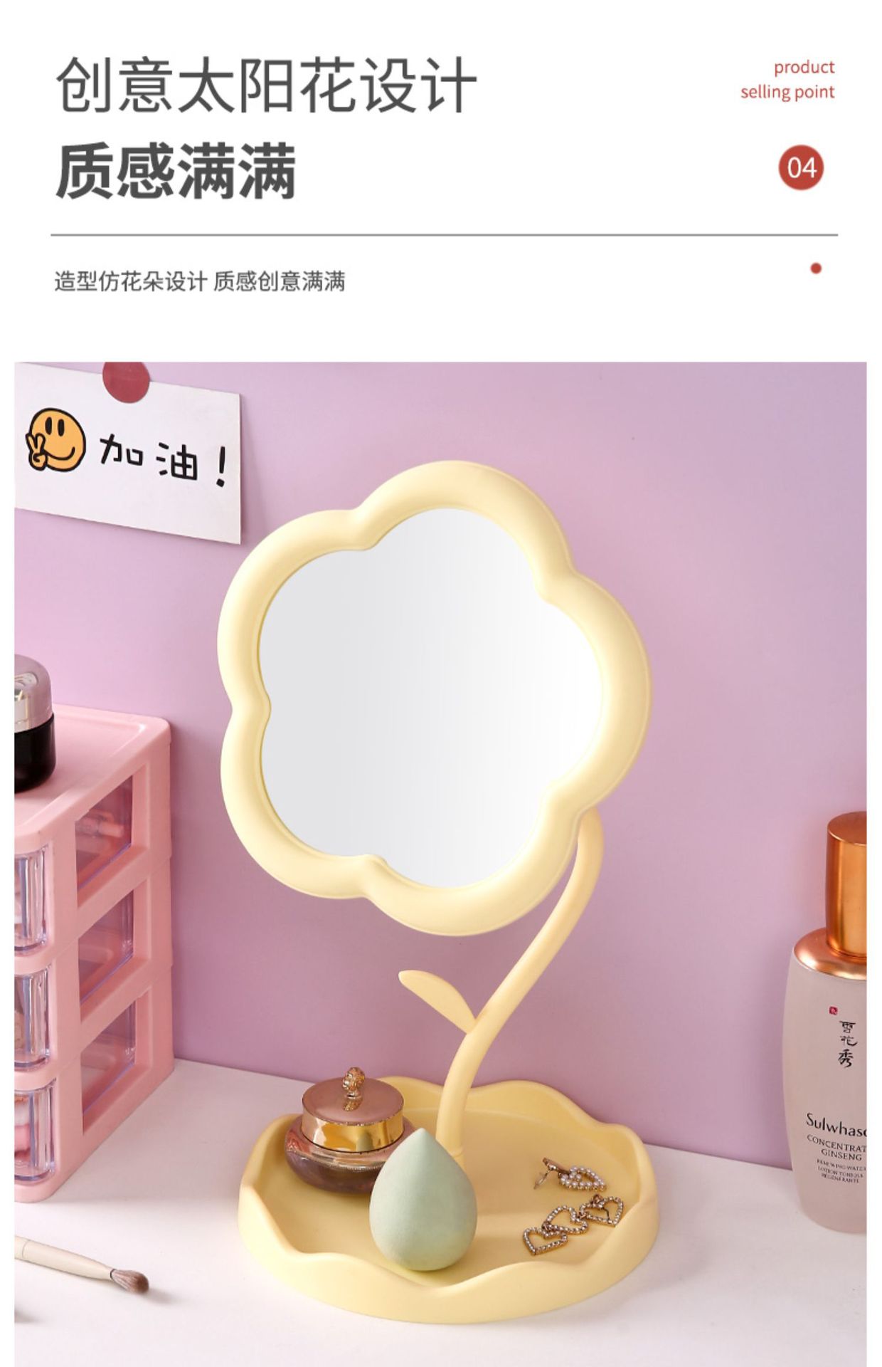 商品名称:花朵镜子太阳花女神化妆镜可旋转可拆卸桌面收纳镜可调节学生宿舍