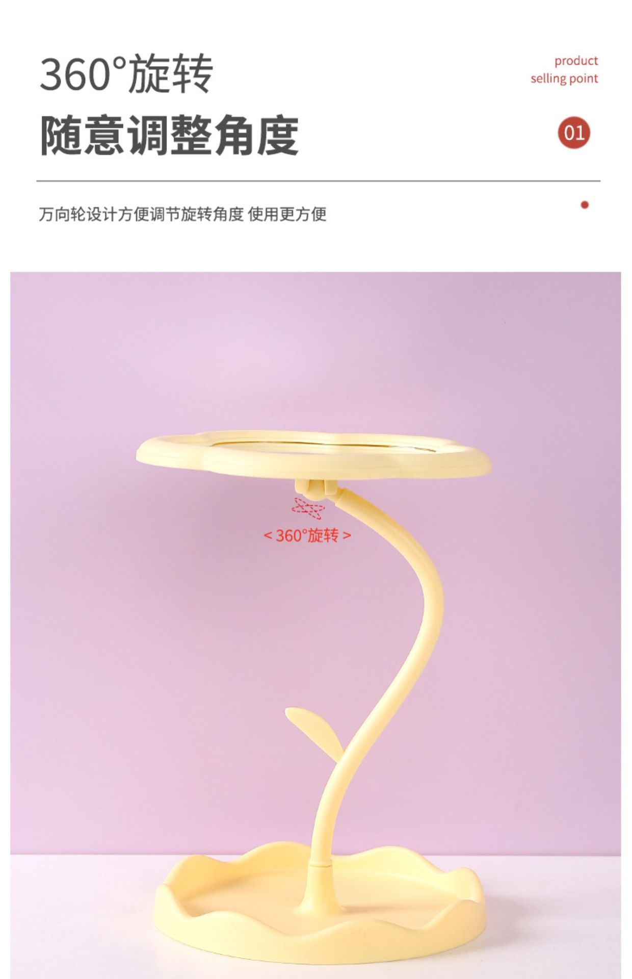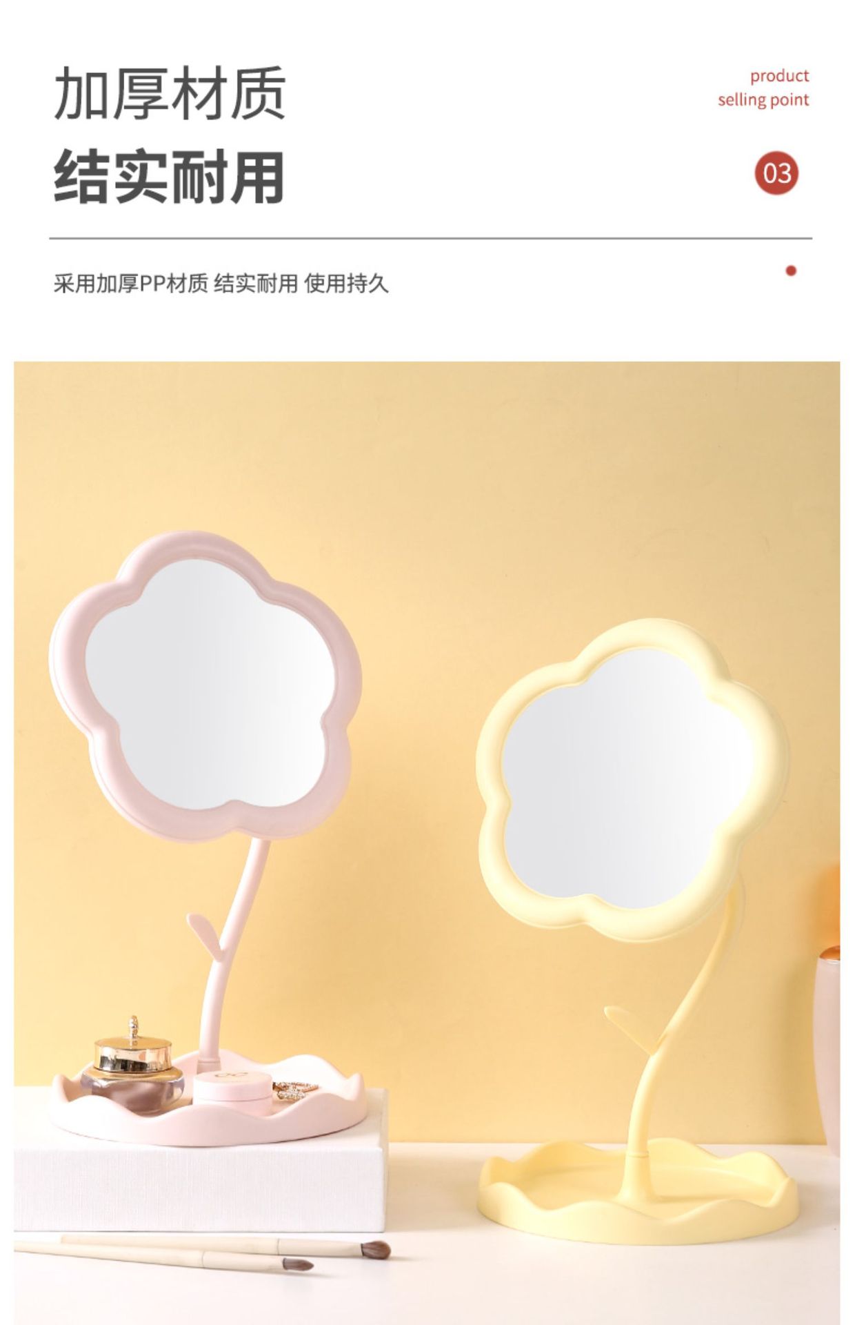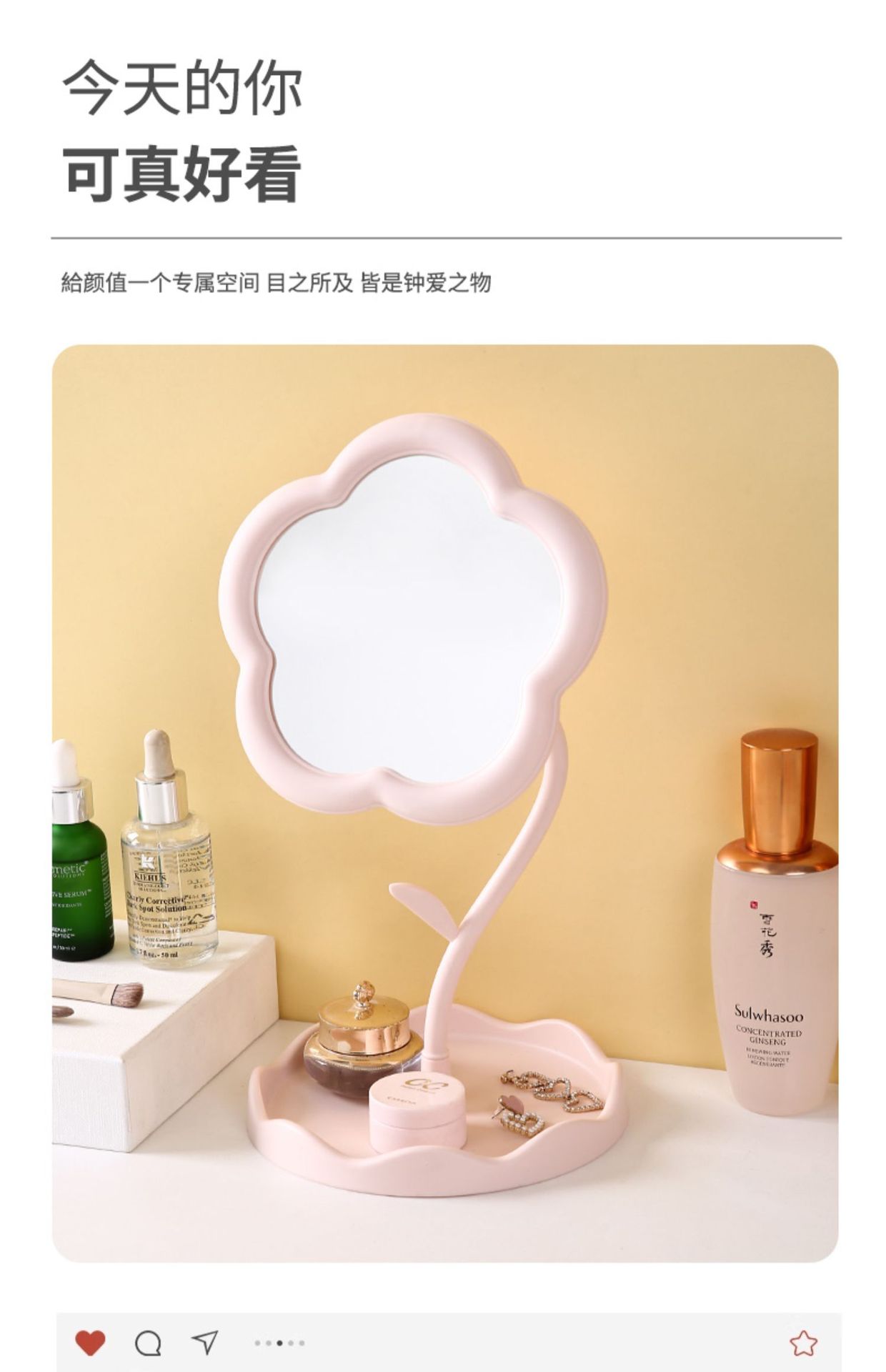 商品名称:花朵镜子太阳花女神化妆镜可旋转可拆卸桌面收纳镜可调节学生宿舍