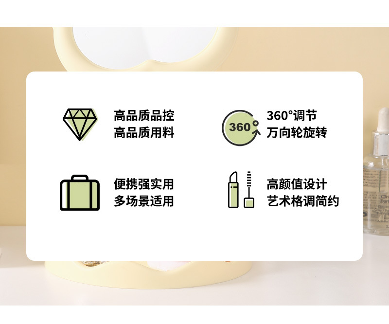 便携化妆镜奶油风梳妆台挂首饰镜办公室桌面学生美妆补妆镜
