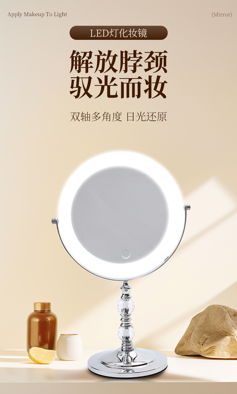 化妆镜台式桌面双面led带灯梳妆ins风学生宿舍办公室美妆厂家直供