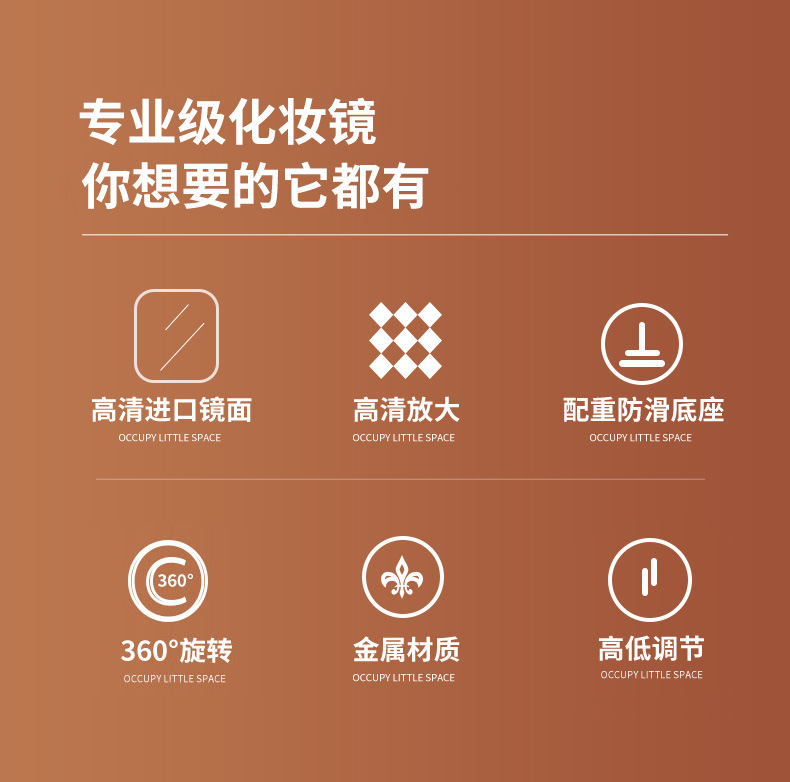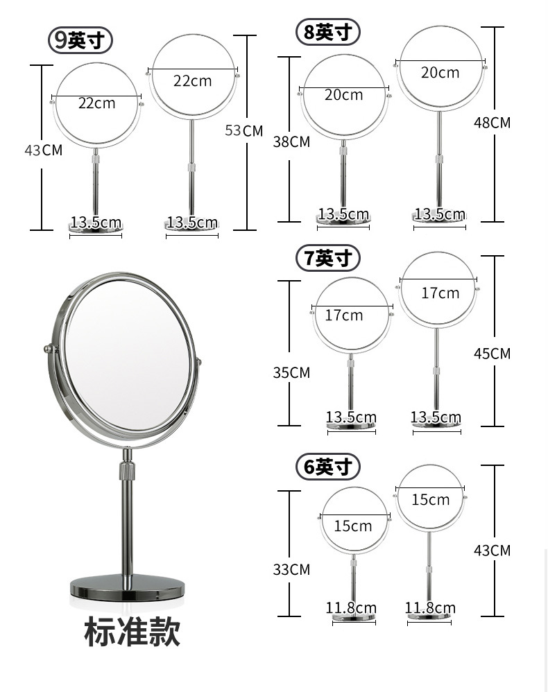 商品名称:安彩欧式可升降可调节高低台式化妆镜双面镜放大镜子伸缩镜美容