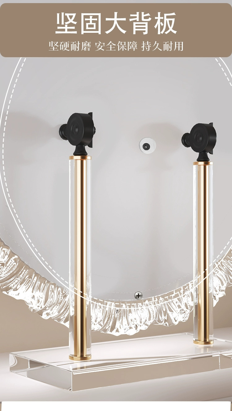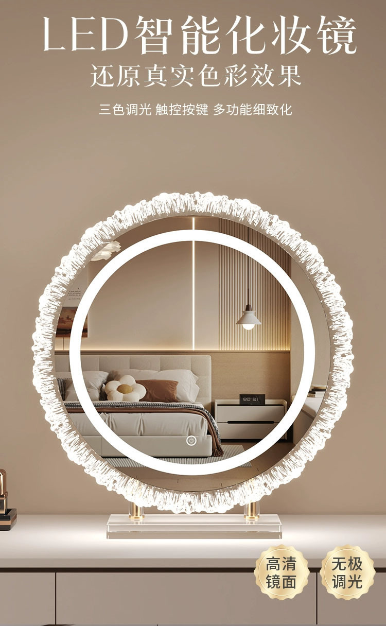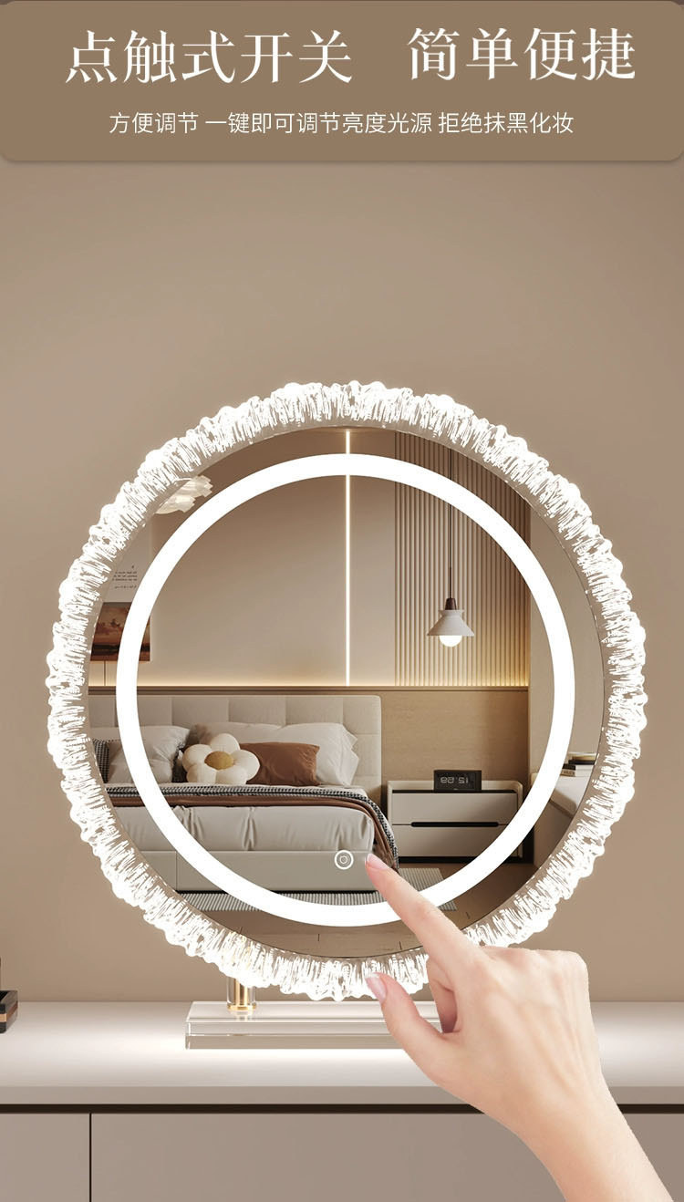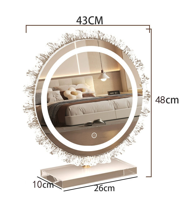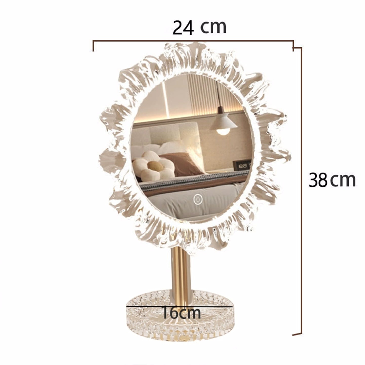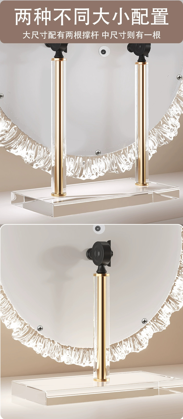 太阳花化妆镜水晶透明底座冰川花边三色变光正光镜面可旋转梳妆镜