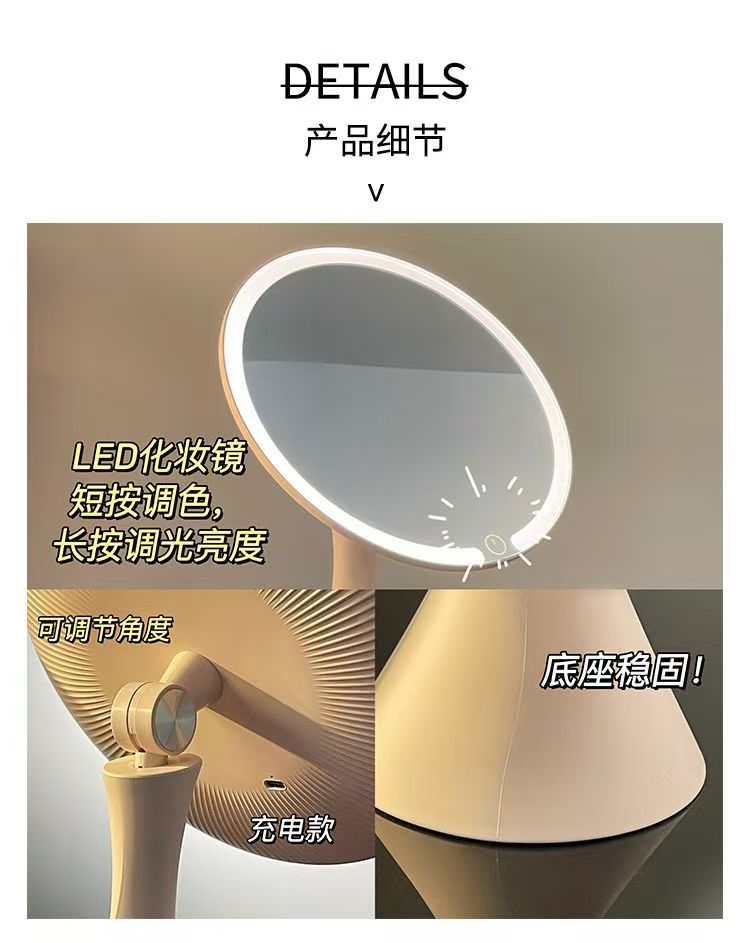 商品名称:小蛮腰台式带灯智能高清梳妆镜桌面补光led美妆化妆镜子网红宿舍