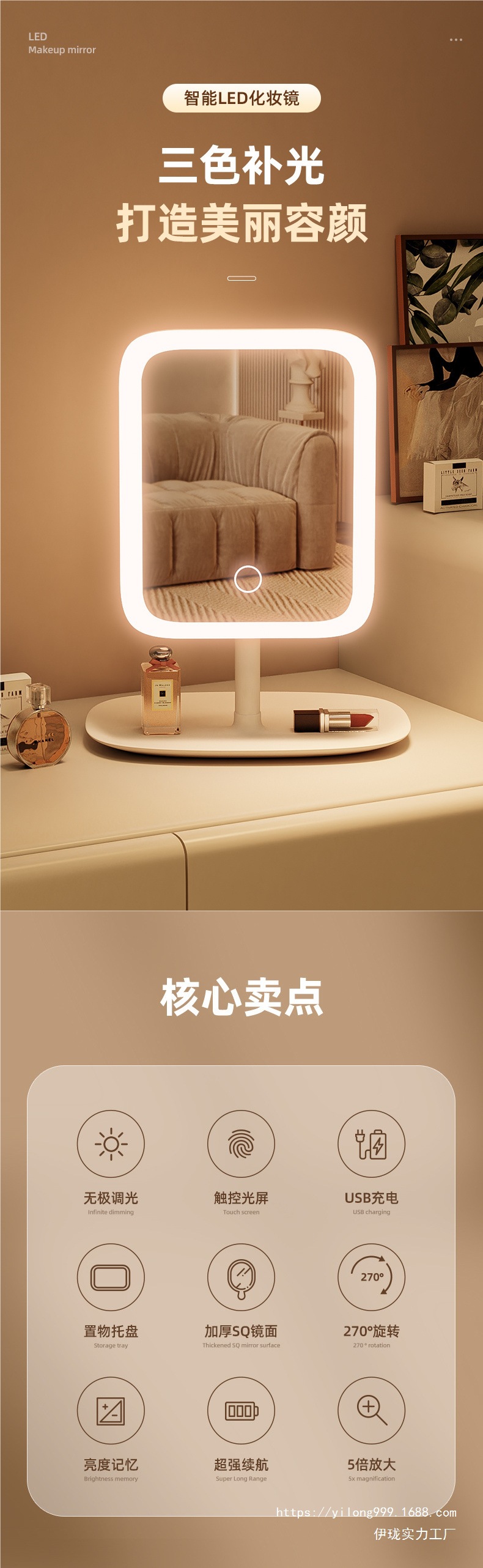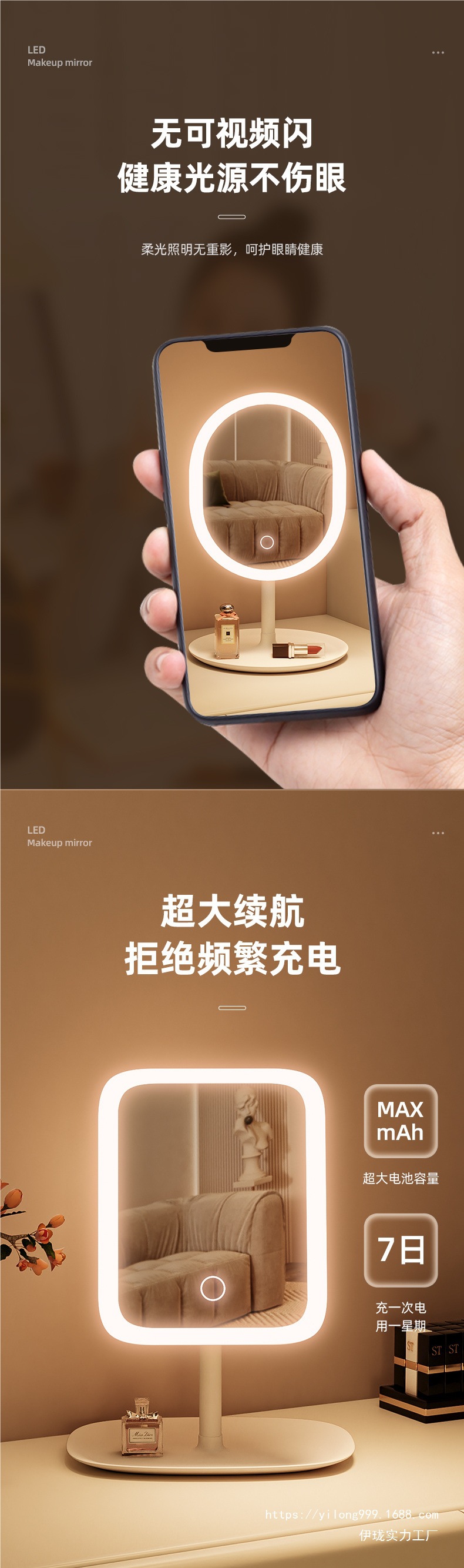 商品名称:网红化妆镜台式带灯卧室学生宿舍补光桌面梳妆镜子
