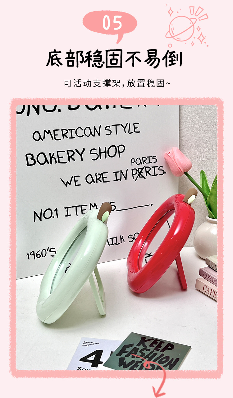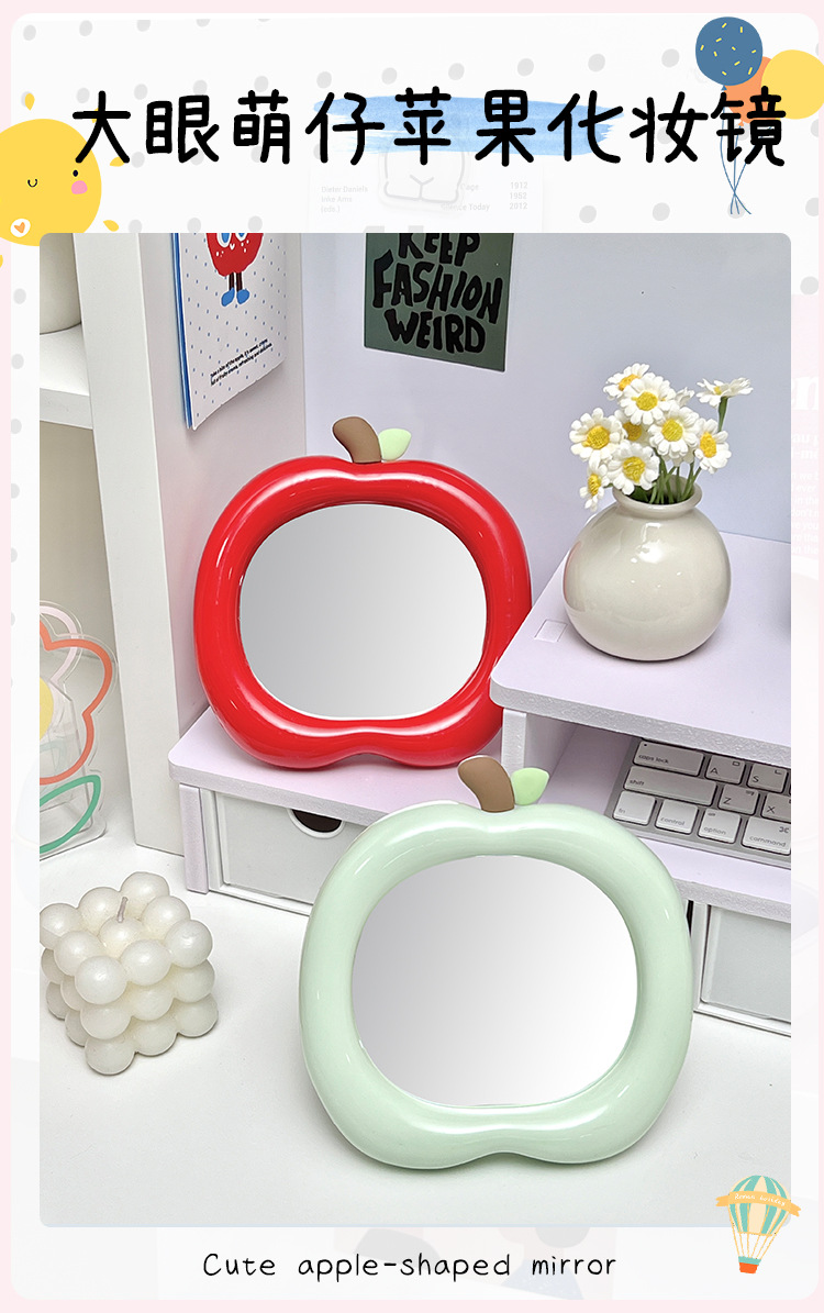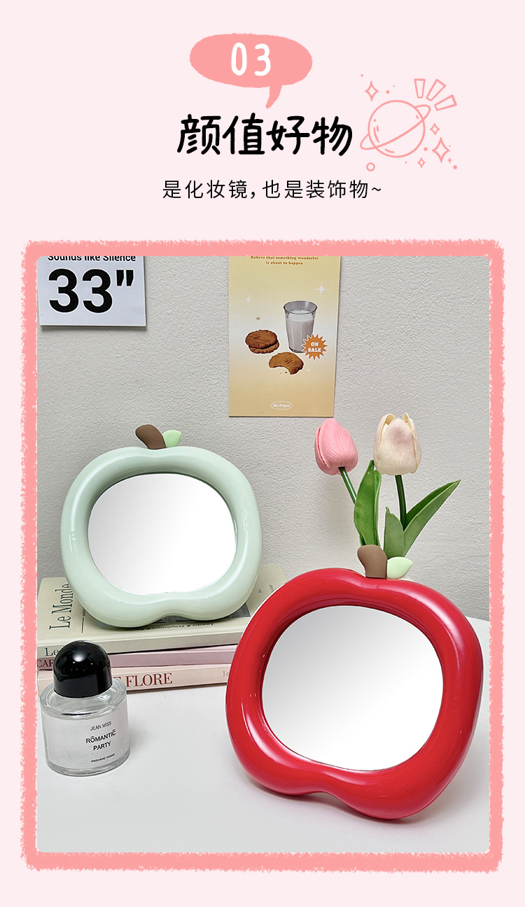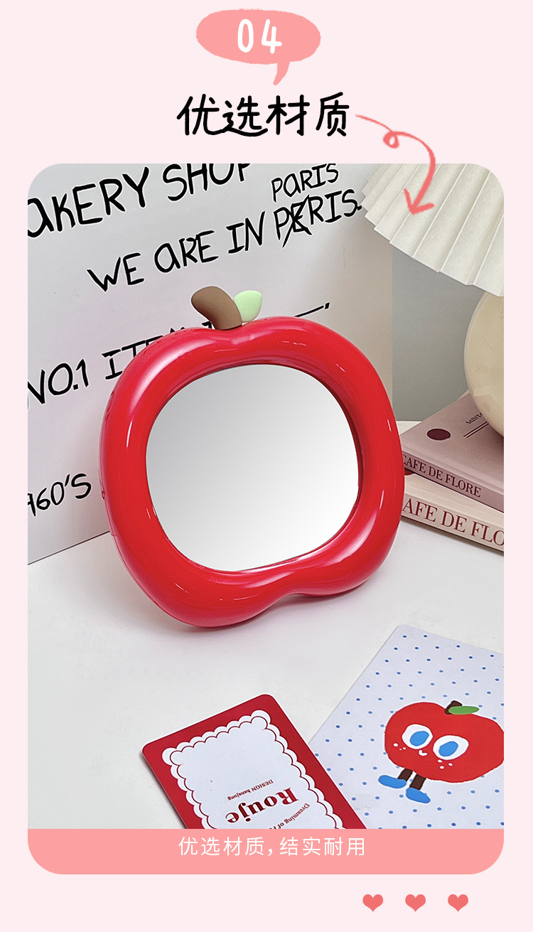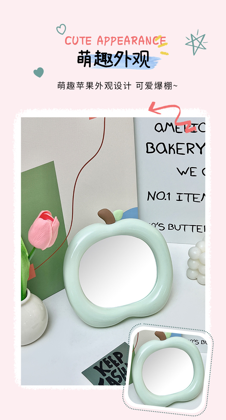 商品名称:苹果化妆镜学生宿舍办公室桌面台式可立随身可爱小镜子便携梳妆镜