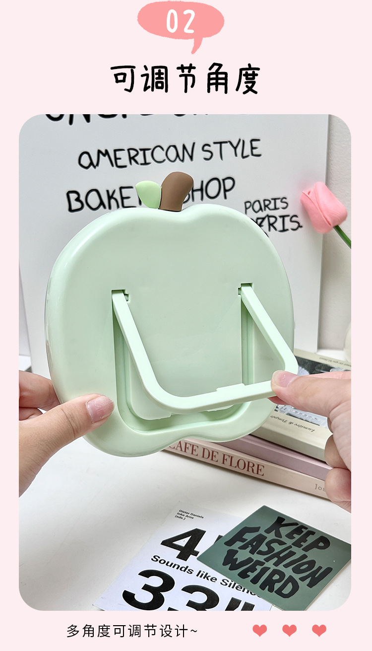 苹果化妆镜学生宿舍办公室桌面台式可立随身可爱小镜子便携梳妆镜