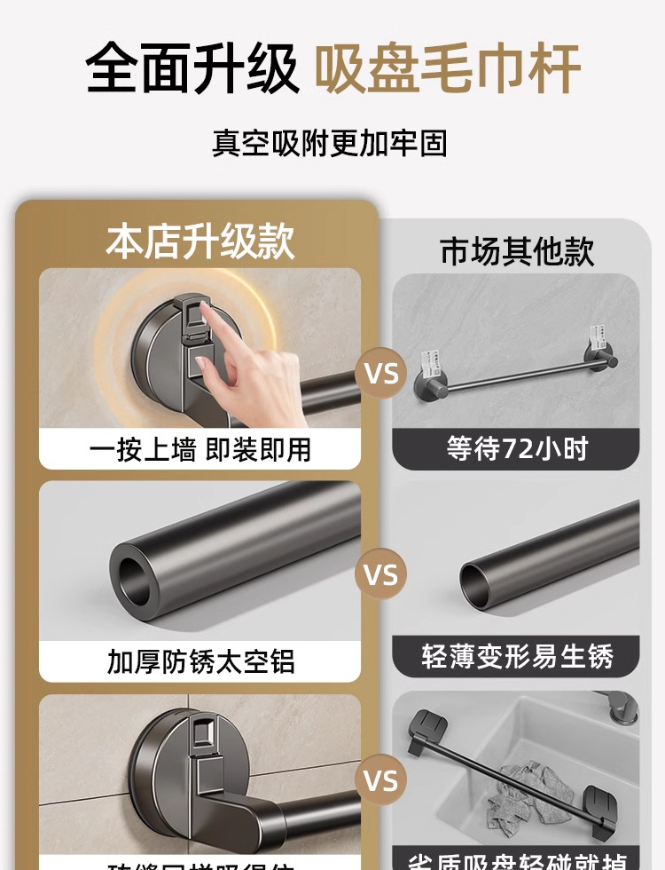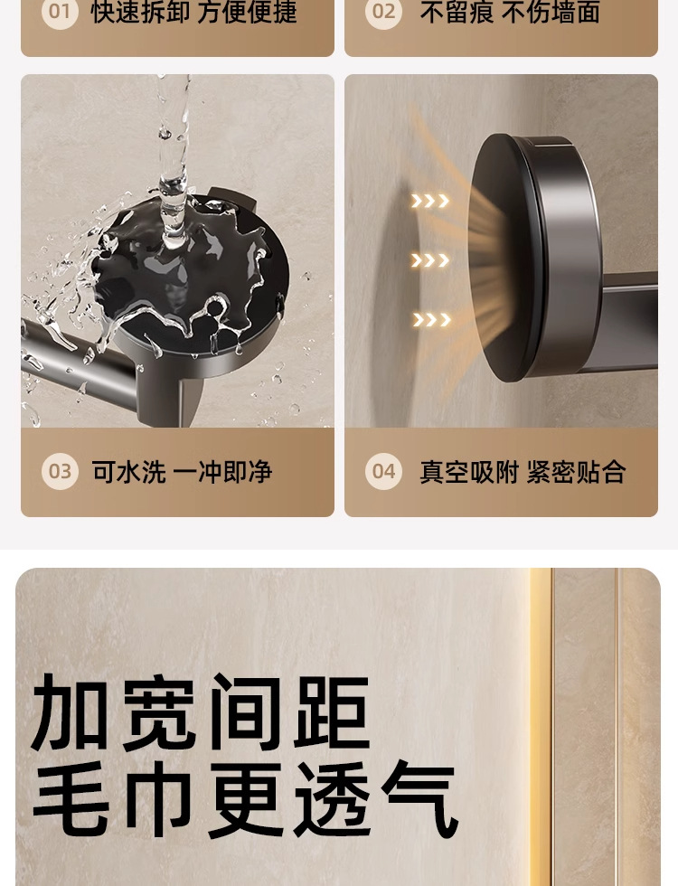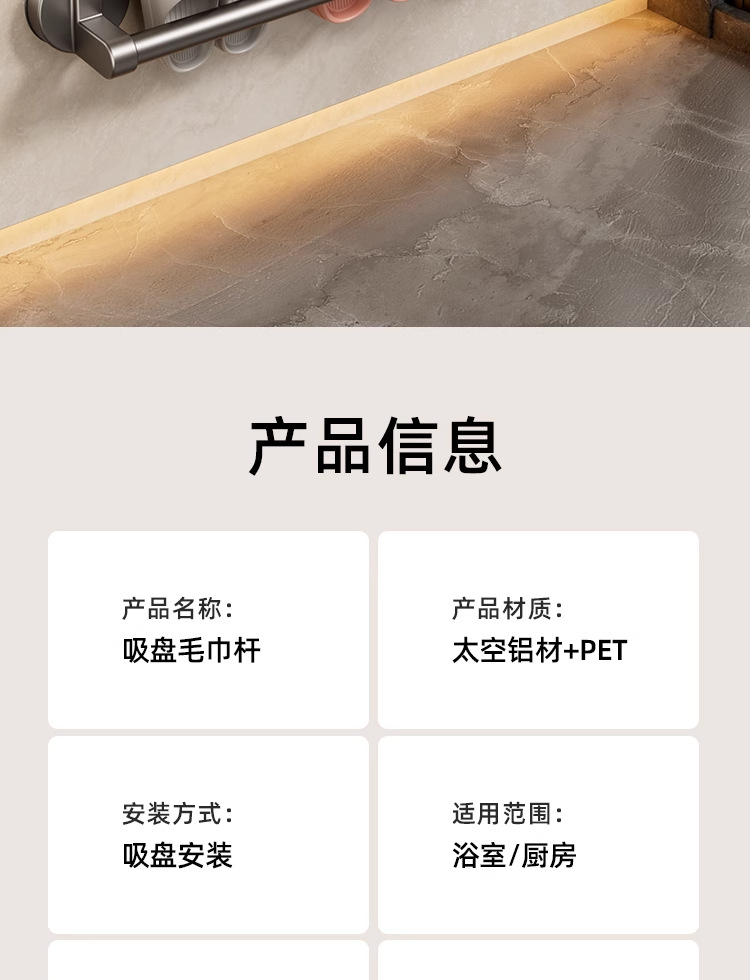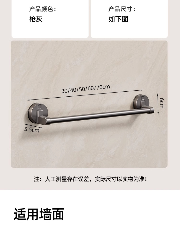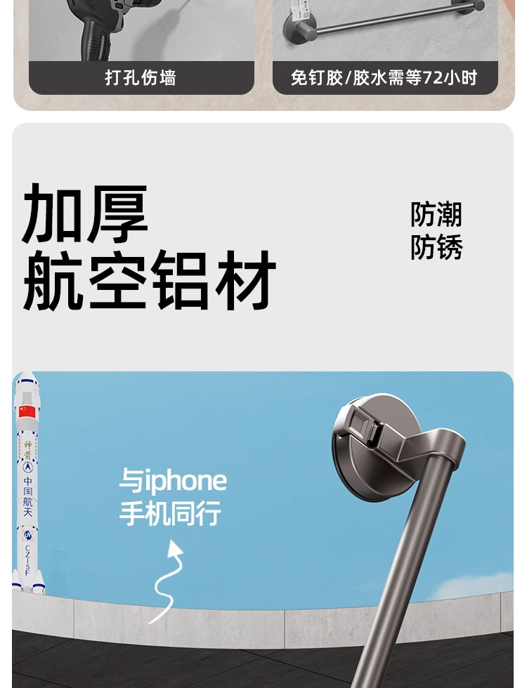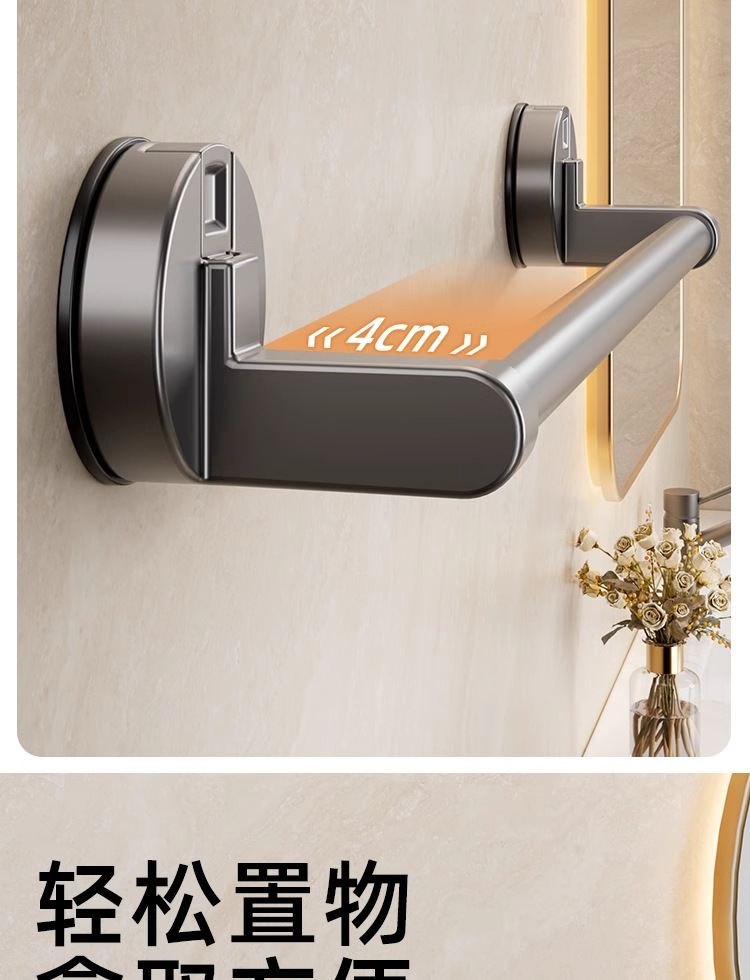 商品名称:双层毛巾杆吸盘免打孔浴室壁挂式毛巾拖鞋收纳挂杆卫生间墙上挂架