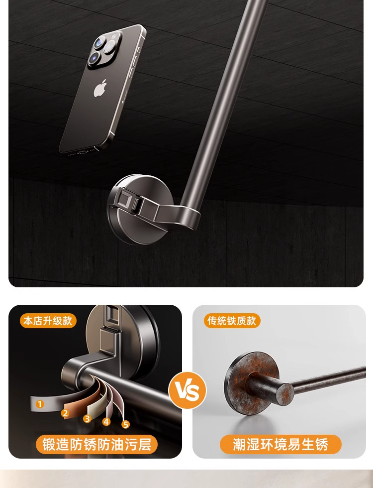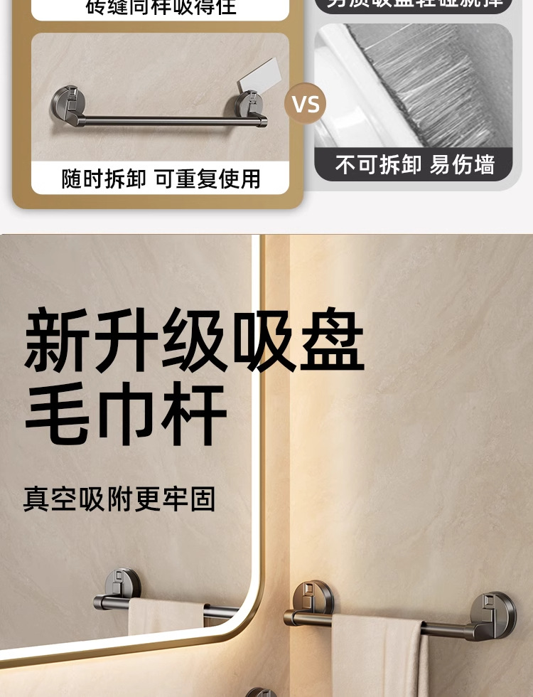 双层毛巾杆吸盘免打孔浴室壁挂式毛巾拖鞋收纳挂杆卫生间墙上挂架