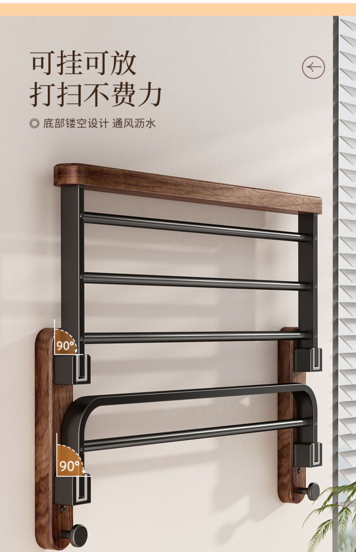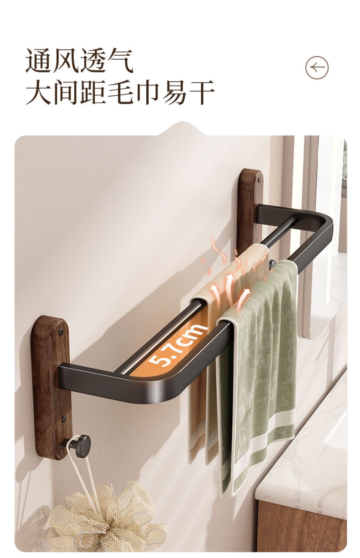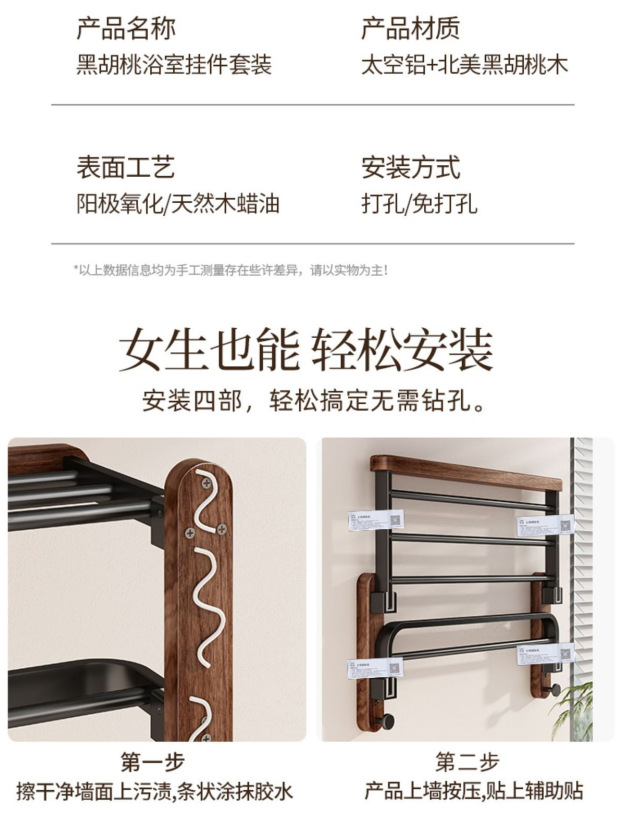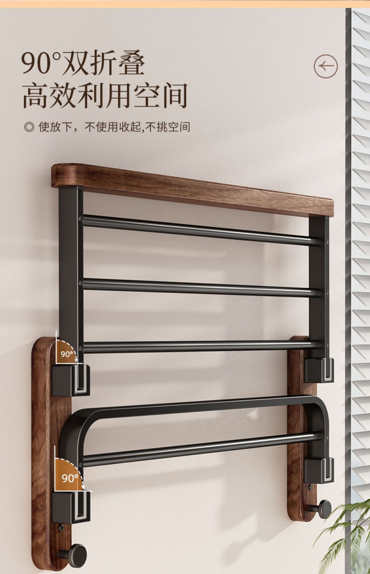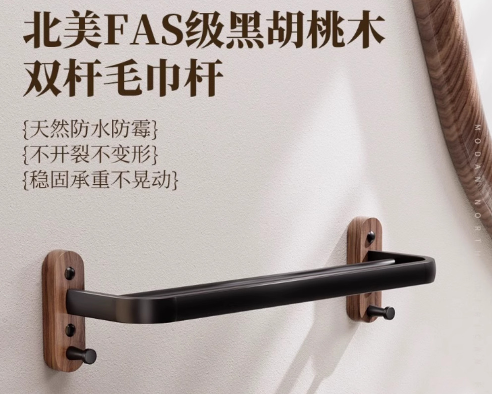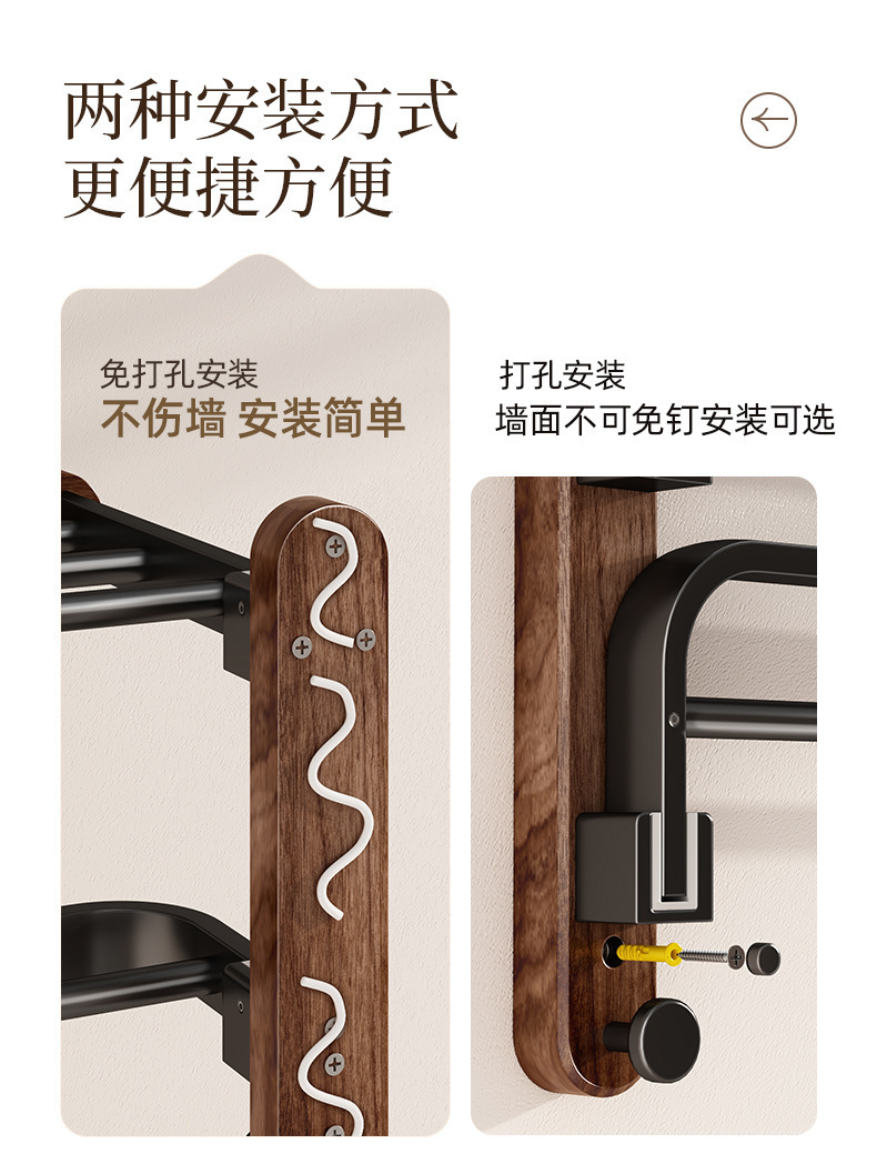 轻奢胡桃木毛巾架卫生间置物架免打孔浴室架子卫生间厕所挂件实木