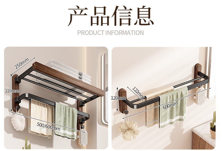 商品名称:轻奢胡桃木毛巾架卫生间置物架免打孔浴室架子卫生间厕所挂件实木