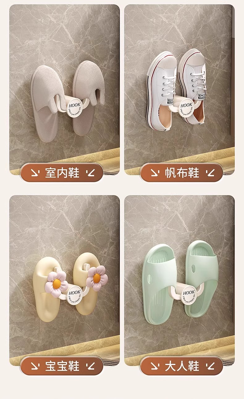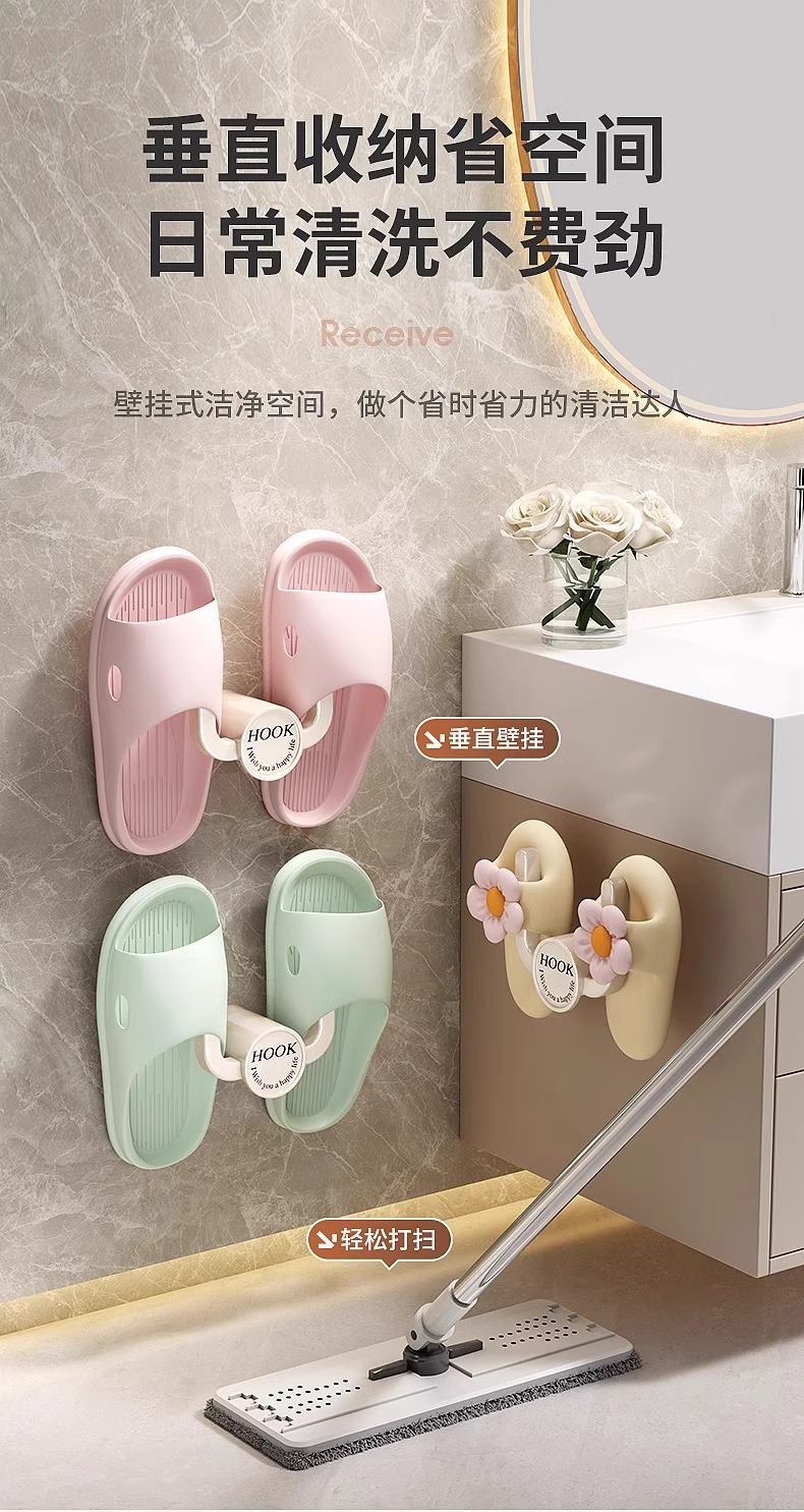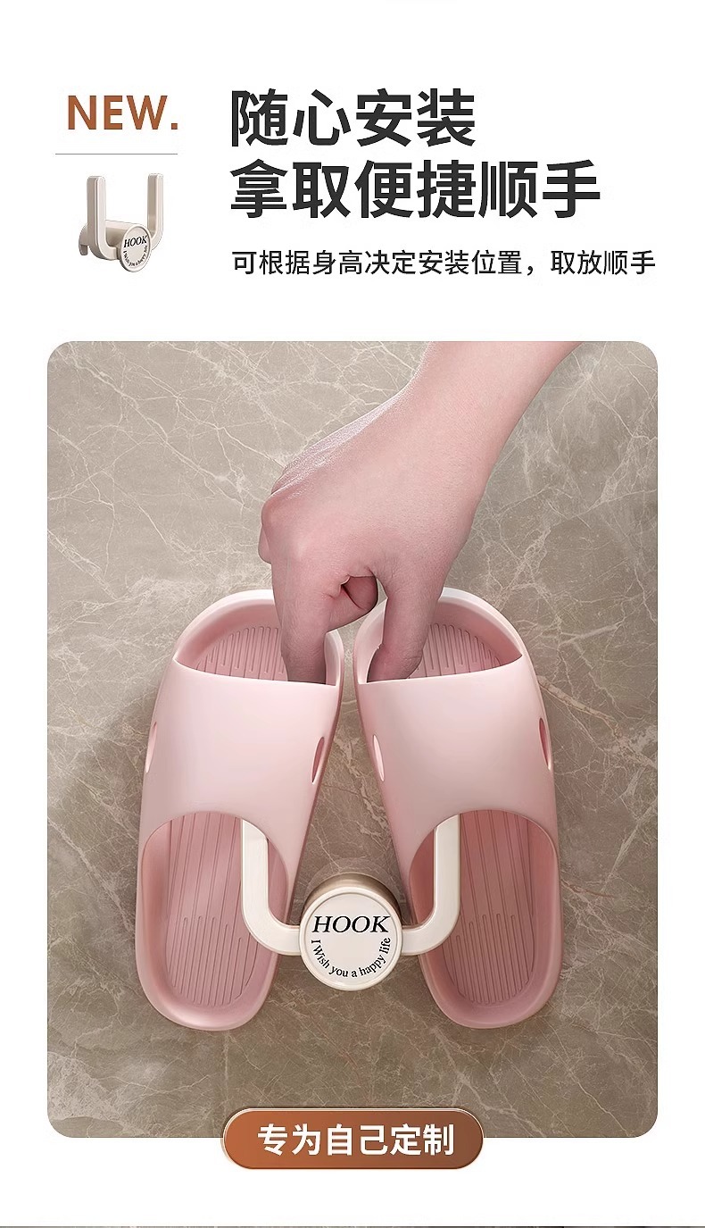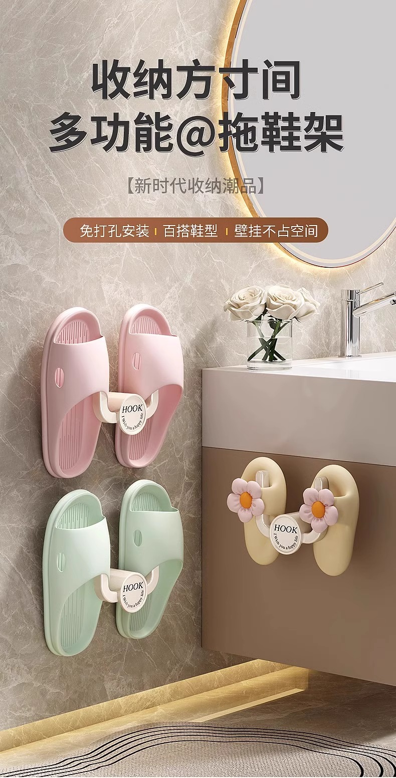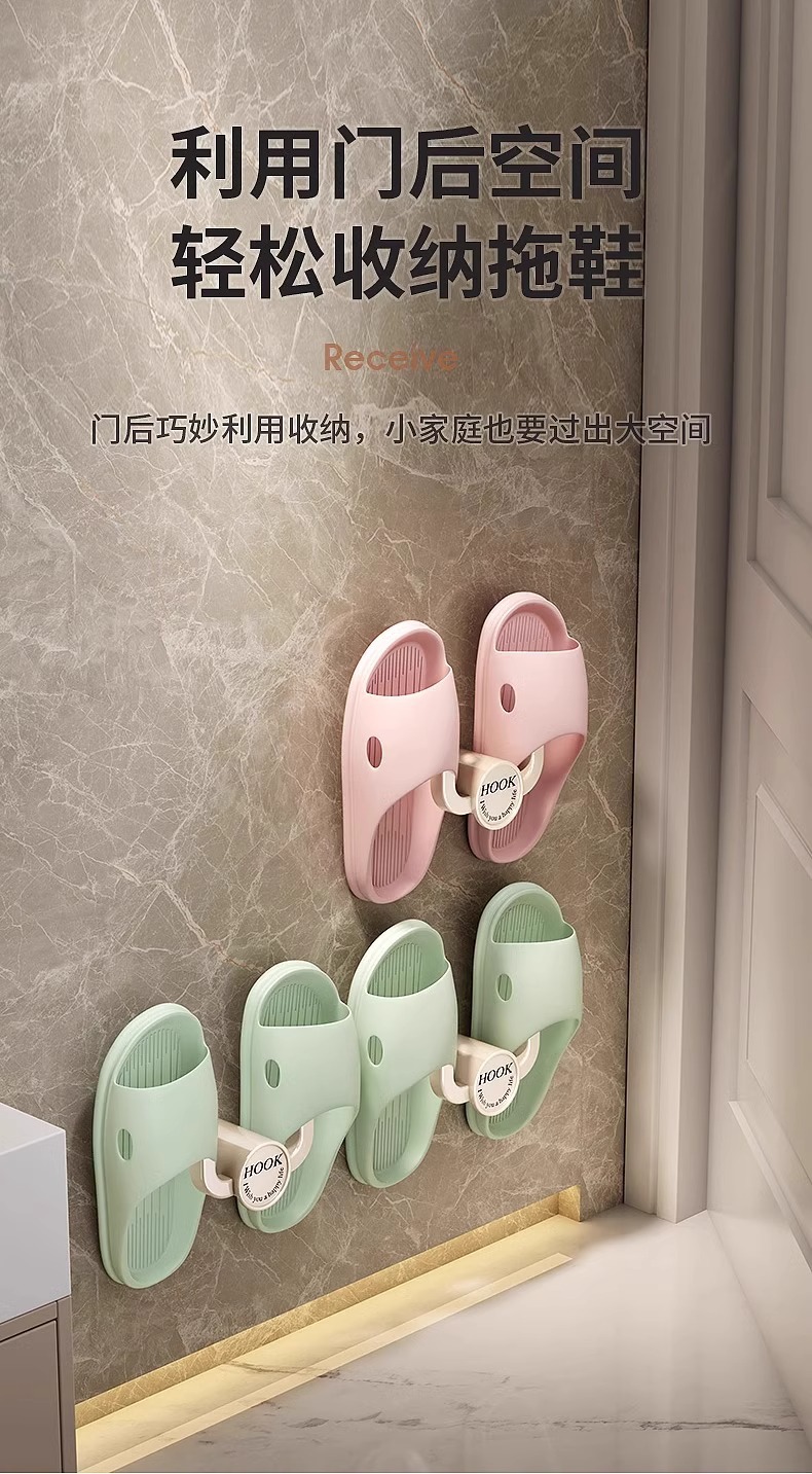 商品名称:浴室壁挂式拖鞋架免打孔鞋架挂式墙上卫生间收纳厕所门后拖鞋挂架