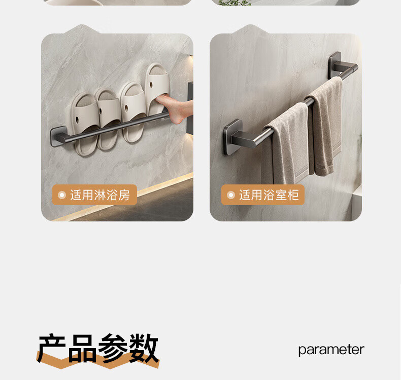 四方毛巾杆 枪灰 单杆50CM