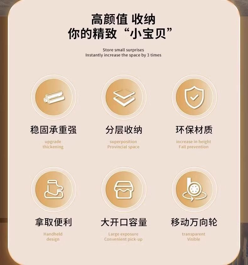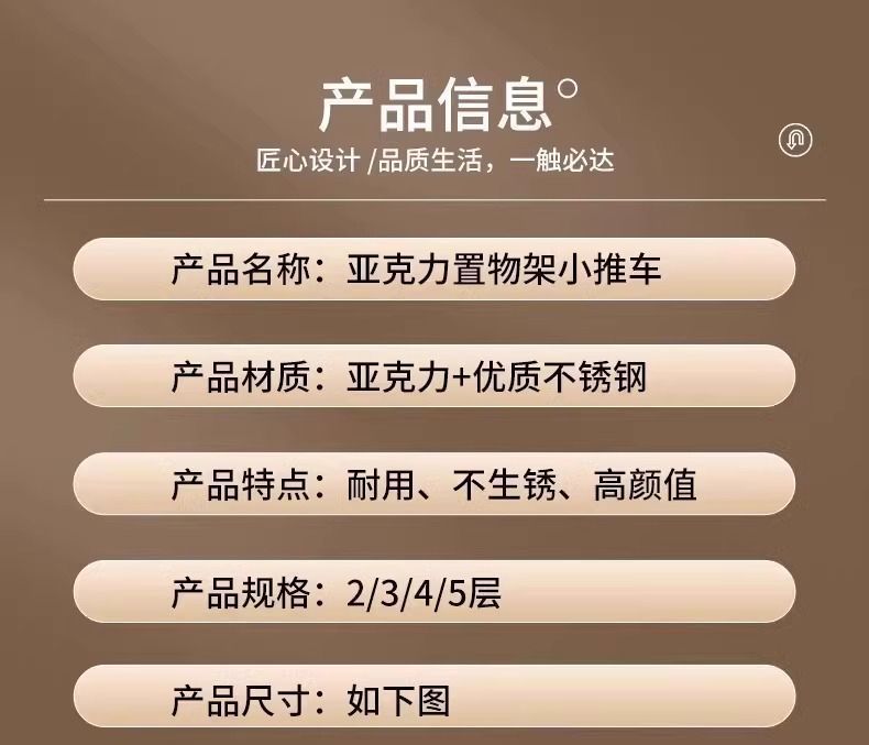商品名称:亚克力床头零食多层化妆品收纳架子浴室透明小推车置物架落地